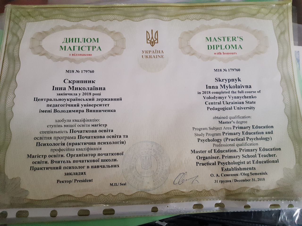 Атестувалася та отримала 2 категорію. Як педагог, я весь час навчаюся, адже маю бути на крок попереду учня.