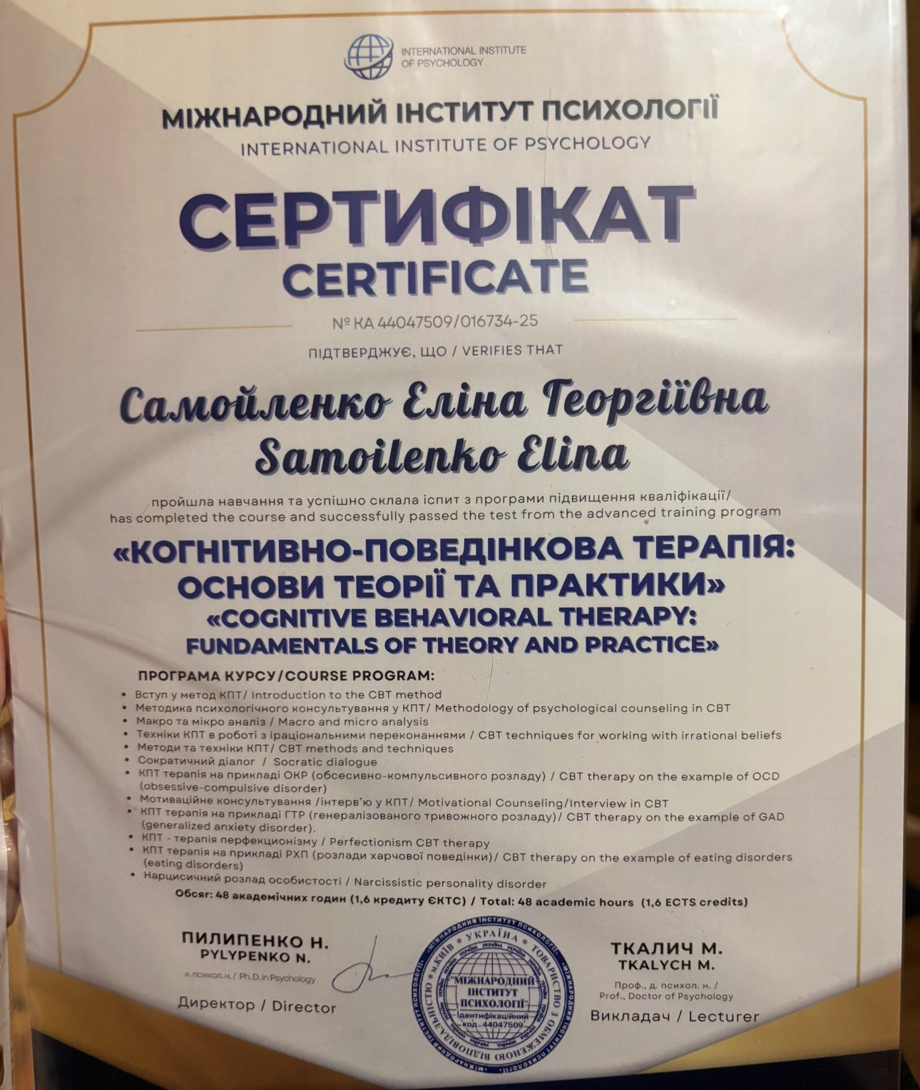 Вітаю! Мене звати Еліна, мені 30 років. Маю вищу психологічну освіту за спеціальністю практична психологія. Постійно знаходжусь в процесі покращення практичних умінь і провідних теорій. Робота з дітьми і родинами стали моєю улюбленою роботою, адже це приносить мир в родини і робить людей щасливими.