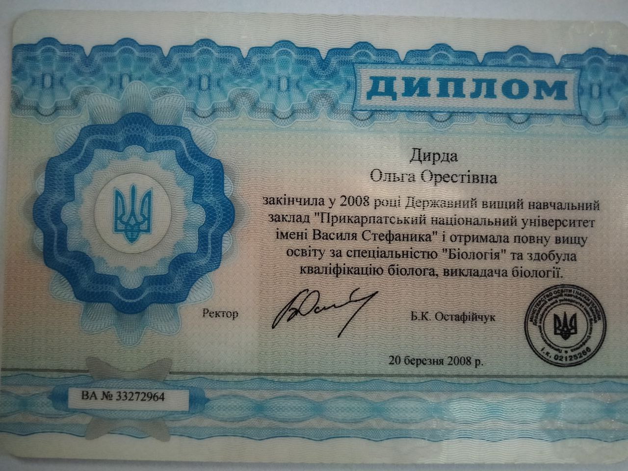 Учитель Галицького ліцею ім. Я. Осмомисла. Стаж роботи 14 років. Окрім педагогічної освіти, маю ще медичну освіту. Медичні знання і практика дуже допомагають у викладанні біології. Мої вихованці є учасники та призери олімпіад та конкурсів МАН. Бали ЗНО моїх вихованців 188+++ .