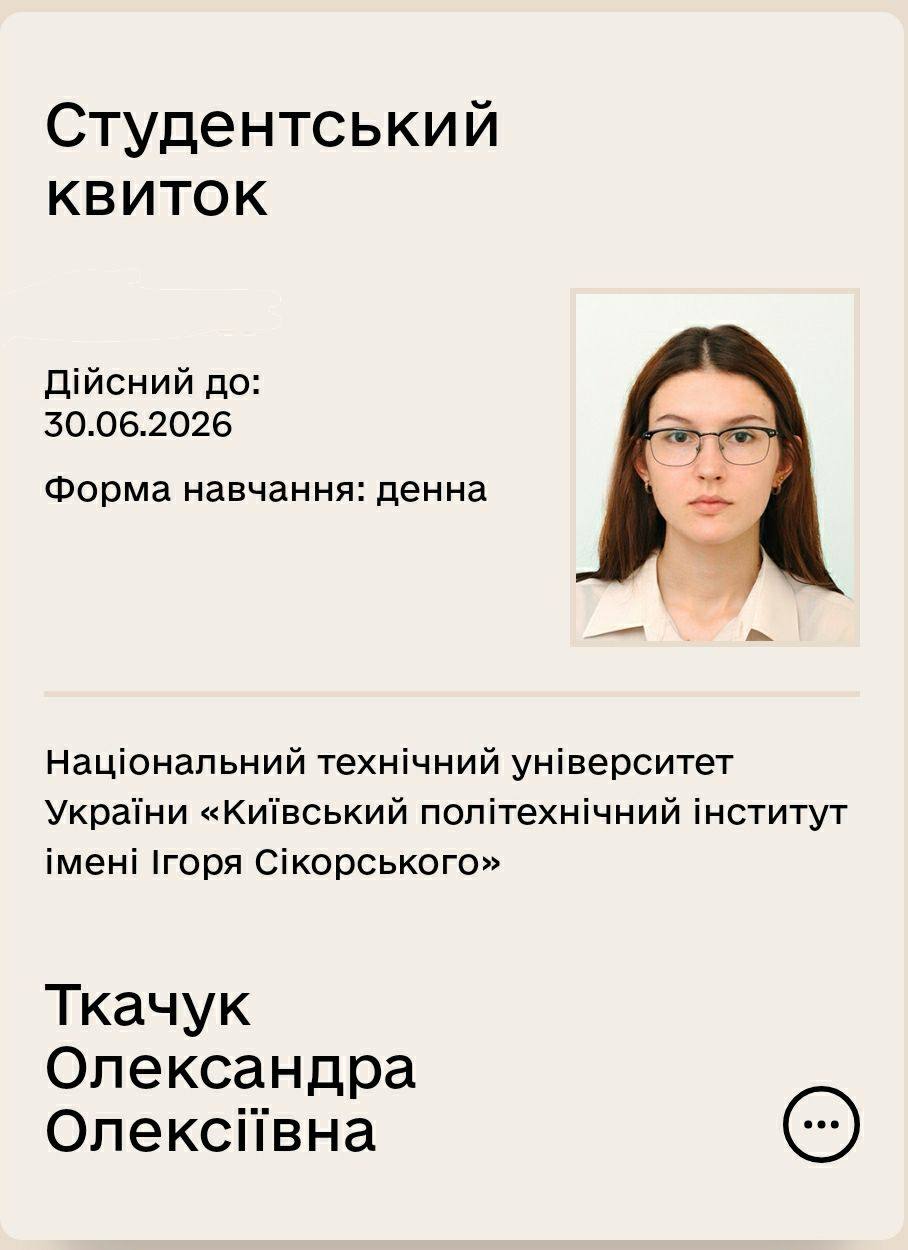 Вітаю! Мене звуть Олександра. Наразі навчаюся на спеціальності «Економіка» в Київському політехнічному інституті імені Ігоря Сікорського. Головною сферою інтересів є математика та економіка. Також закінчила ліцей з поглибленим вивченням математики та інформатики. Моя мета – показати наскільки чудовою та простою може бути математика!