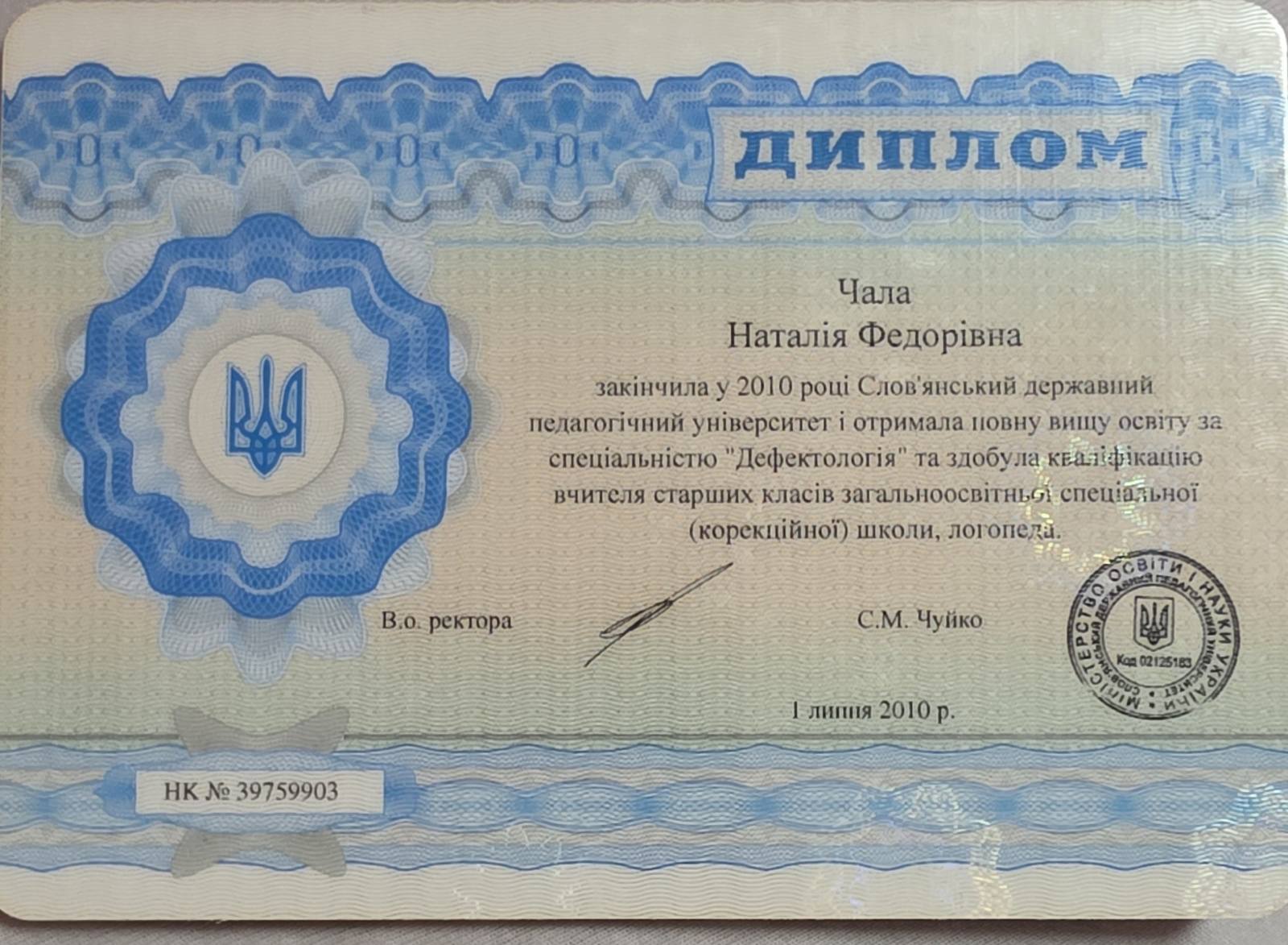 Закінчила у 2010 році Слов'янський державний педагогічний університет і отримала повну вищу освіту за спеціальністю "Дефектологія" та здобула кваліфікацію вчителя старших класів спеціальної (корекційної) школи. Логопед. Працюю логопедом в дитячому клубі. Досвід більше 7 років.Пройшла курси з ментальної арифметики. Досвід викладання 6 років.Займаюся підготовкою дітей до школи. Заняття завжди провожу в ігровій формі.Викладаю на українській і російській мові по бажанню.Працюю онлайн