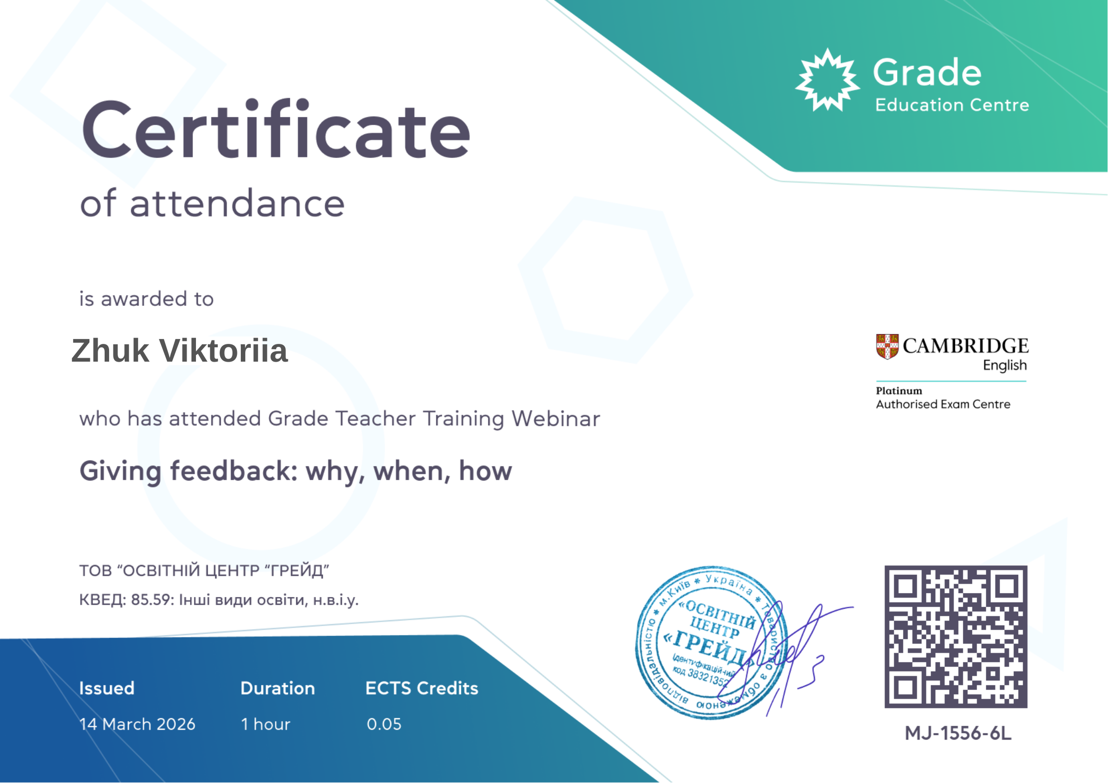 Я люблю створювати тематичні заняття, які пов’язані з реальним життям. На уроках використовую інтерактивні платформи, відео, аудіо та ігрові елементи, щоб навчання було не лише ефективним, а й цікавим. Особливу увагу приділяю тому, як використовувати англійську в повсякденних ситуаціях.