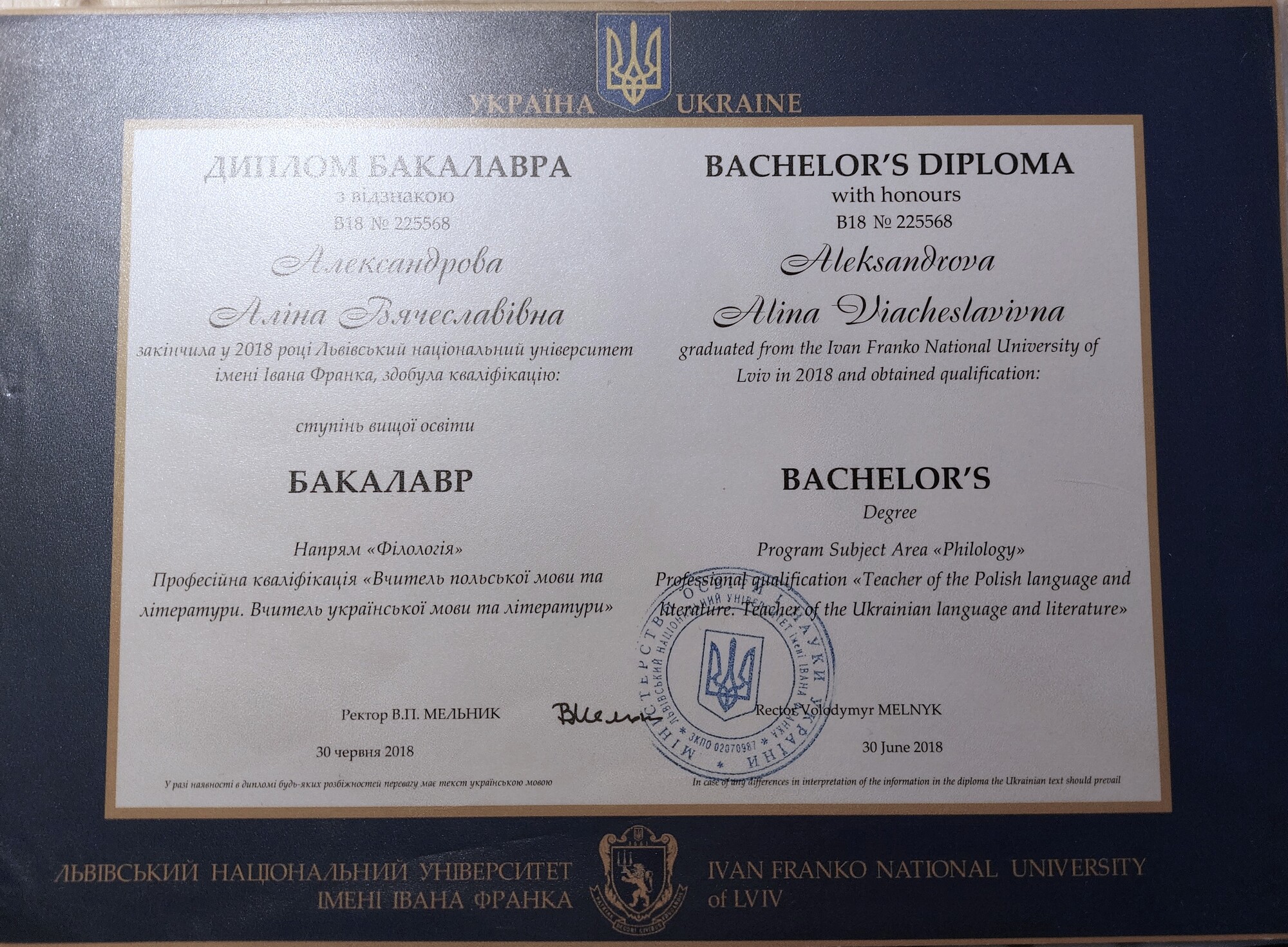 Привіт! Мене звати Аліна, я дипломований викладач польської мови з 5-річним досвідом. Маю профільну освіту - у 2018 році закінчила Національний університет ім. Івана Франка за спеціальністю Вчитель польської мови та літератури, вчитель української мови та літератури, після чого закінчила Академію ім. Якуба з Парадижа в Гожові Великопольському за спеціальністю Медіа-комунікації, мовознавство та журналістика.