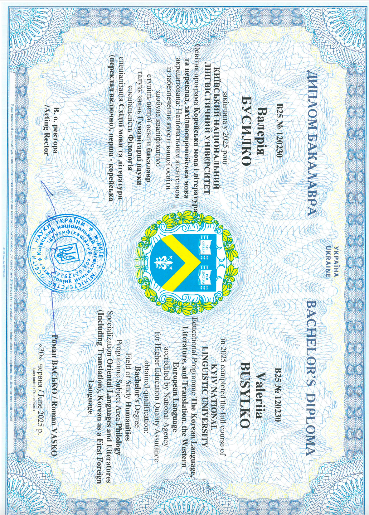 Я — дипломований фахівець з корейської філології, випускниця лінгвістичного університету. Зараз проживаю в Південній Кореї, тому навчаю не лише мови, а й живого, сучасного корейського, який справді використовують у повсякденному житті.