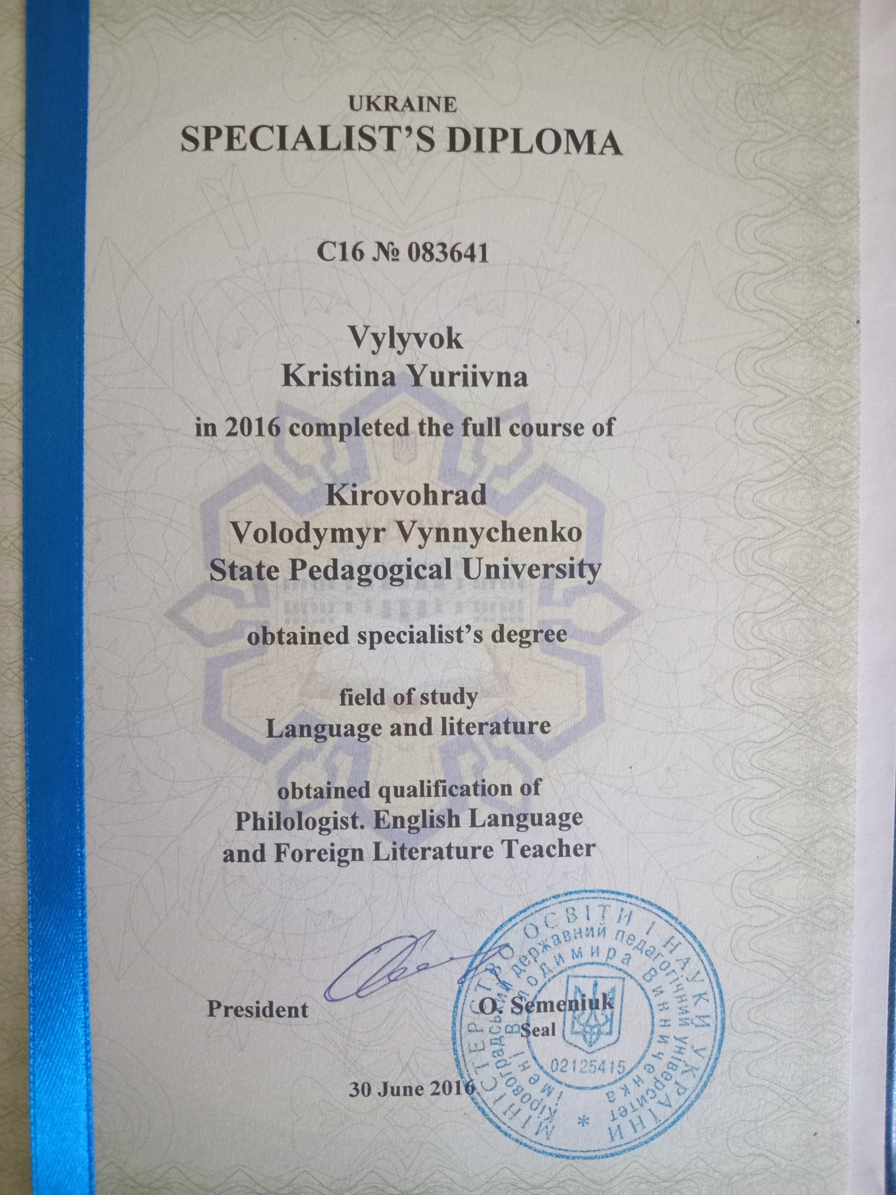 Професійний викладач англійської мови. Закінчила КЛПУ ім. Володимира Винниченка. Маю 8-річний досвід викладання.