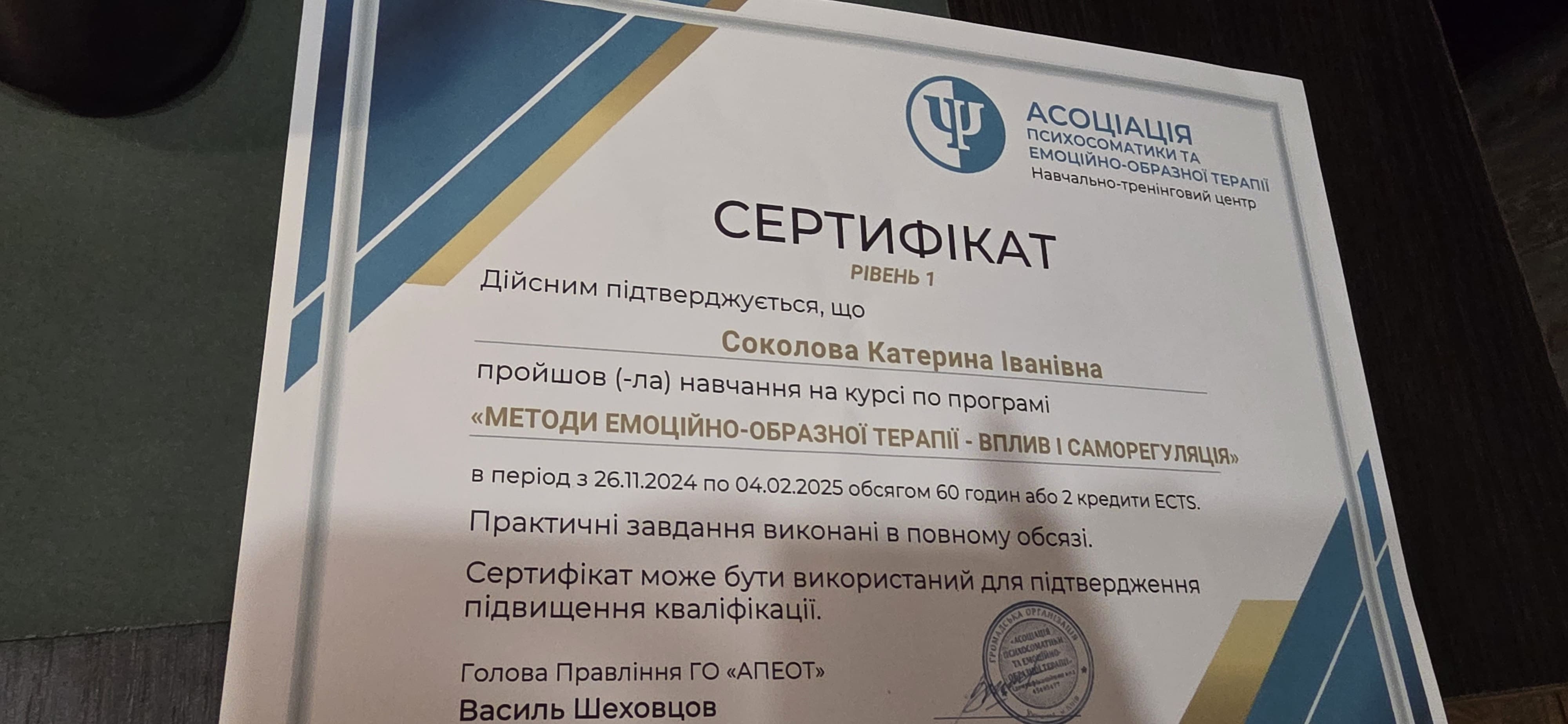 ЕОТ (Емоційно-образна терапія): Метод роботи через образи. Дозволяє швидко та дбайливо трансформувати емоційні стани, коли логічного аналізу недостатньо для якісних змін.