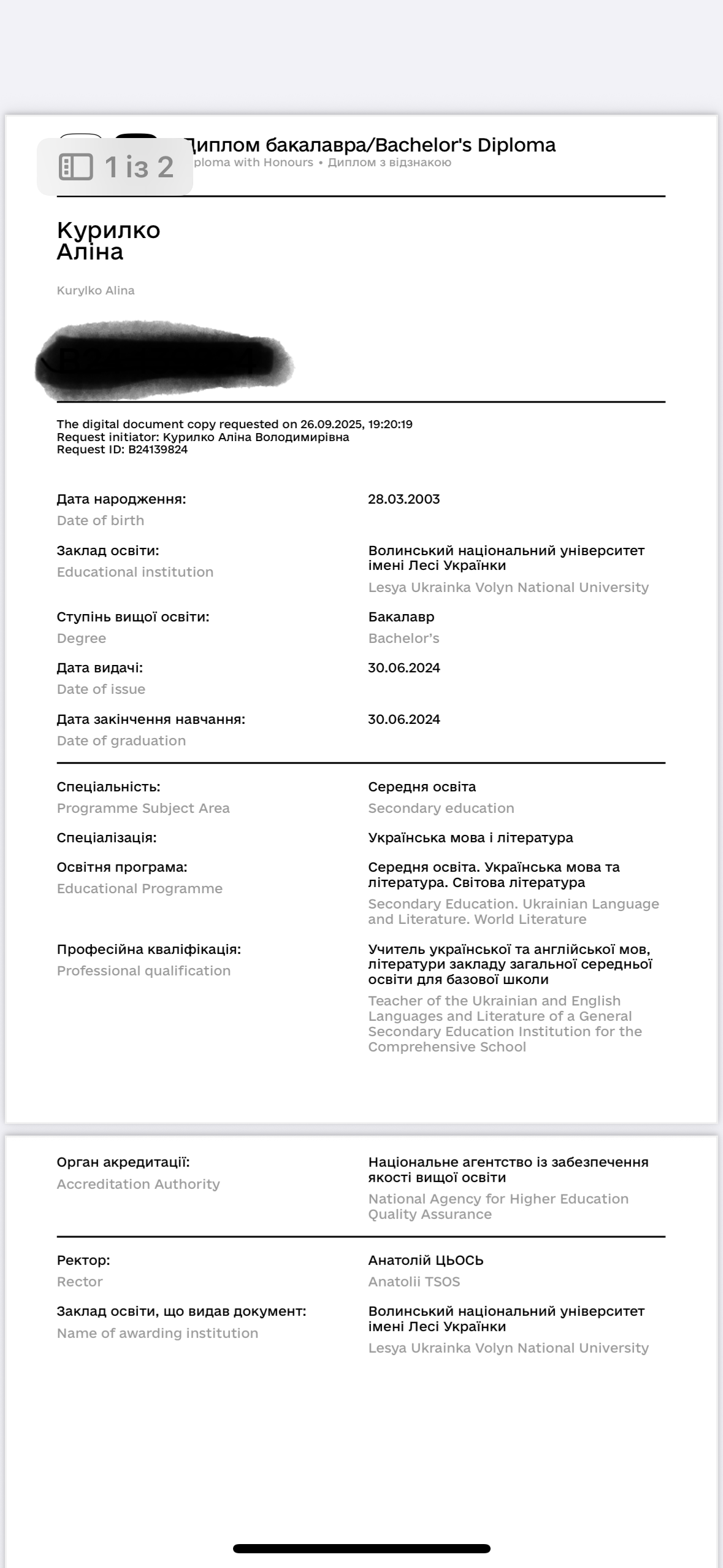 Досвід роботи у школі та репетитором - 3 роки. Легко знаходжу спільну мова з учнями будь-яких вікових груп.