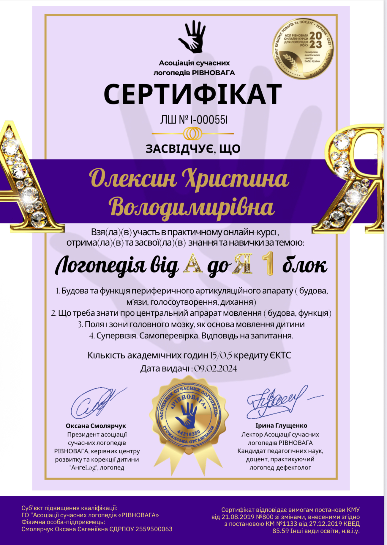 Мене надихає бачити, як маленькі перемоги з часом перетворюються на великі досягнення, і як дитина стає більш впевненою, відкритою та радісною. Я вірю, що правильне слово-це ключ не лише до гарної вимови, а й до гармонійного розвитку та щасливого дитинства.