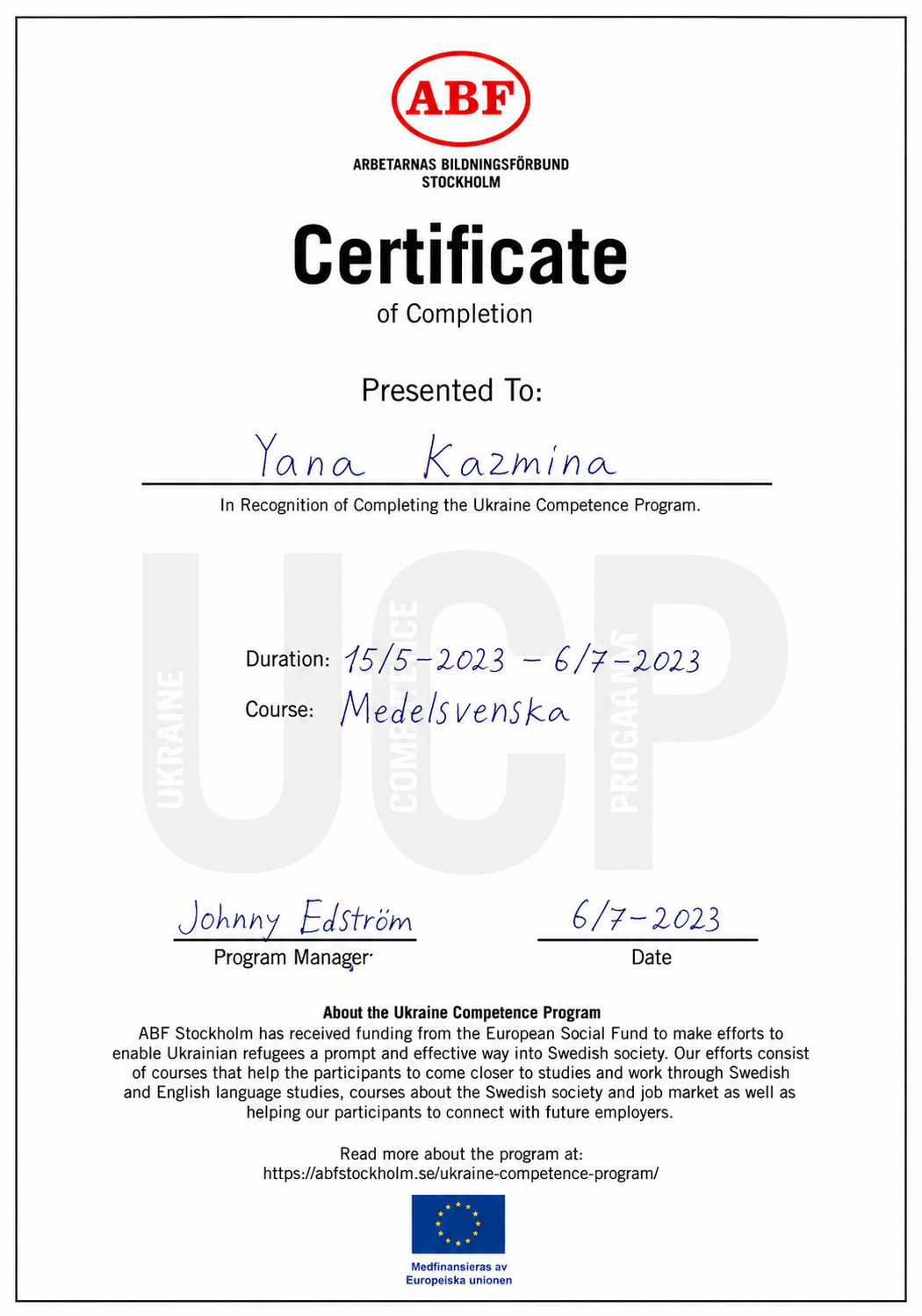 Маю міжнародні мовні сертифікації, вивчала мову у нейтівів.