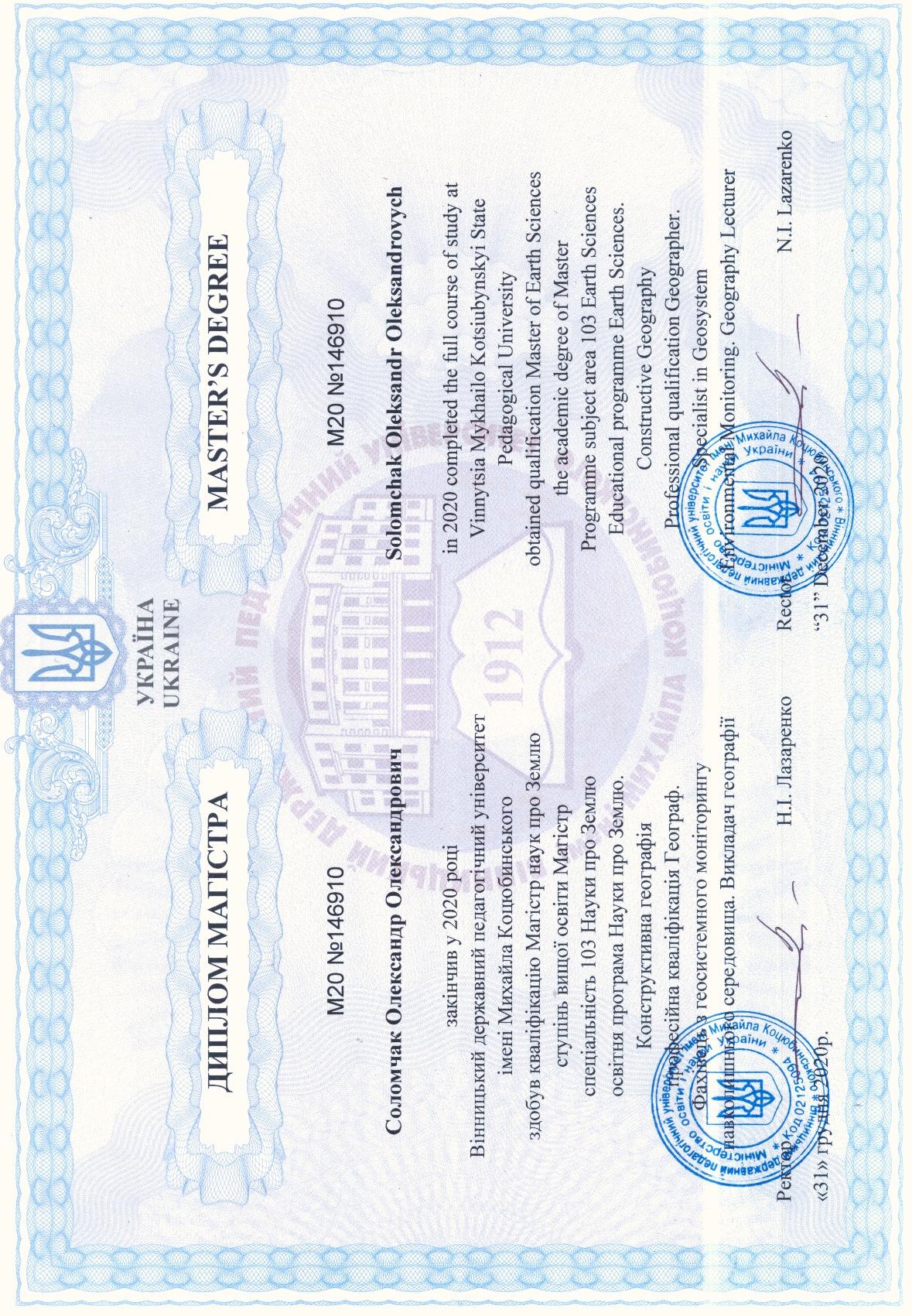 Здобув 2 повні вищі освіти (географія та історія) в ВДПУ, на даний момент вже є 6 років досвіду роботи в школі та успішної підготовки до ЗНО. Маю великий обсяг знань з усіх природничих наук та історії