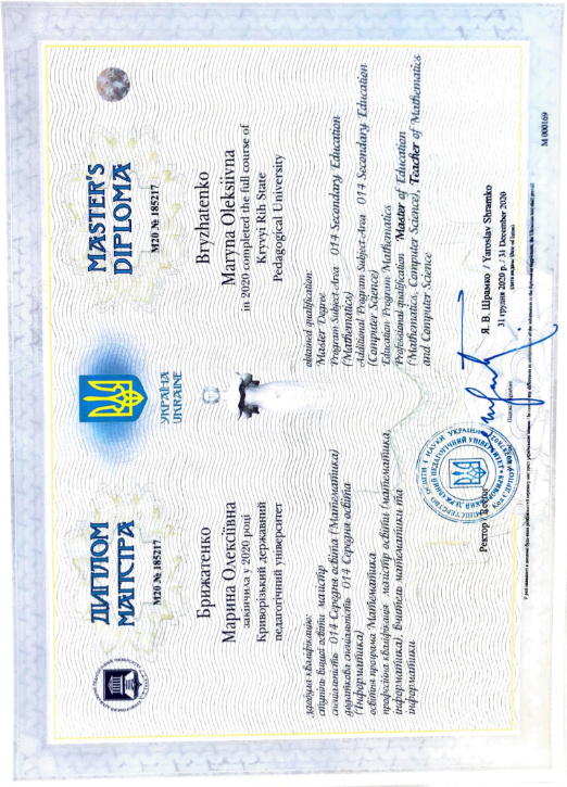 Я закінчила Криворізький національний університет у 2019 році, за дипломом — вчитель математики та інформатики. Під час навчання в університеті вже працювала в школі й паралельно займалась репетиторством, тож маю досвід як з учнями у класі, так і в індивідуальній роботі. Легко знаходжу підхід до дітей, пояснюю складне простими словами та допомагаю учням не лише покращити оцінки, а й повірити у свої сили.