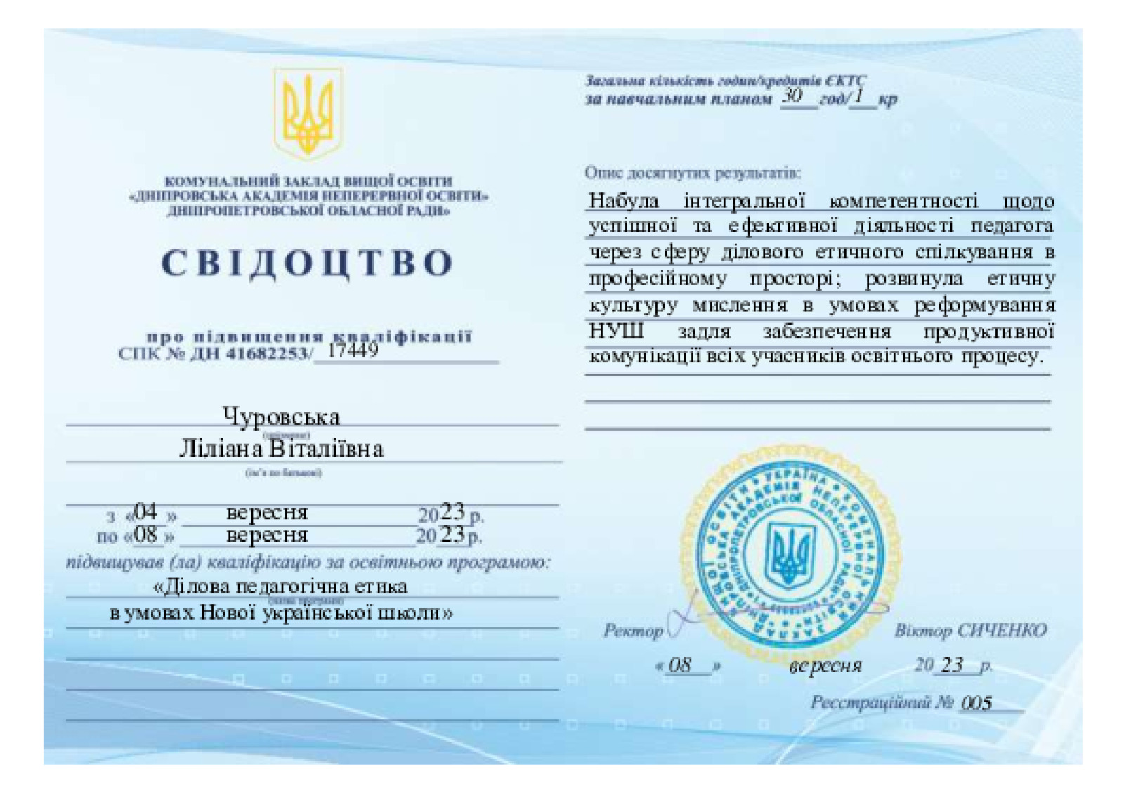 Деталі про досвід викладання:
