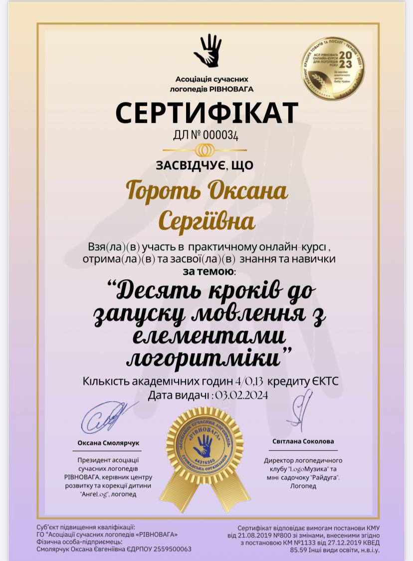 Привіт! Мене звати Оксана, я онлайн-логопед із понад трирічним досвідом роботи. Дуже люблю дітей і підходжу до кожного учня з теплом, увагою та індивідуальною методикою. У мене чудово налагоджена комунікація як з дітьми, так і з батьками — ми завжди працюємо в партнерстві та рухаємось до спільної цілі.