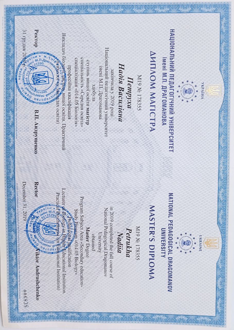 2) Національний педагогічний університет імені М.П. Драгоманова, 2019 рік (магістр).
