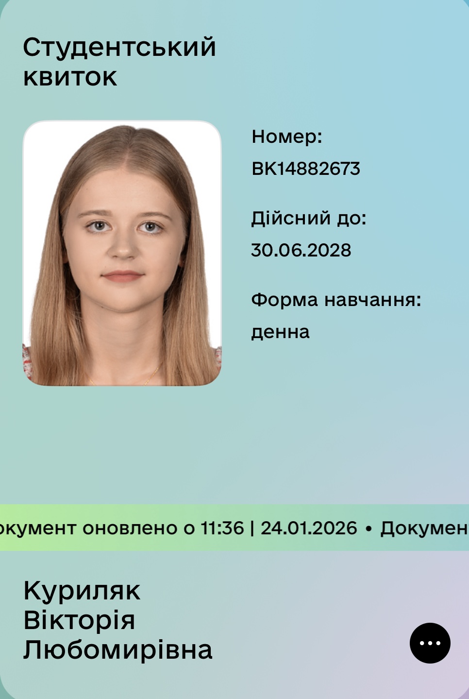 Мене звати Вікторія,навчаюсь на спеціальності «Психологія»,2 курс.Також закінчила «Школу універсального журналіста» та маю сертифікат з драматерапії.Відкрита до співпраці та емпатійна:)