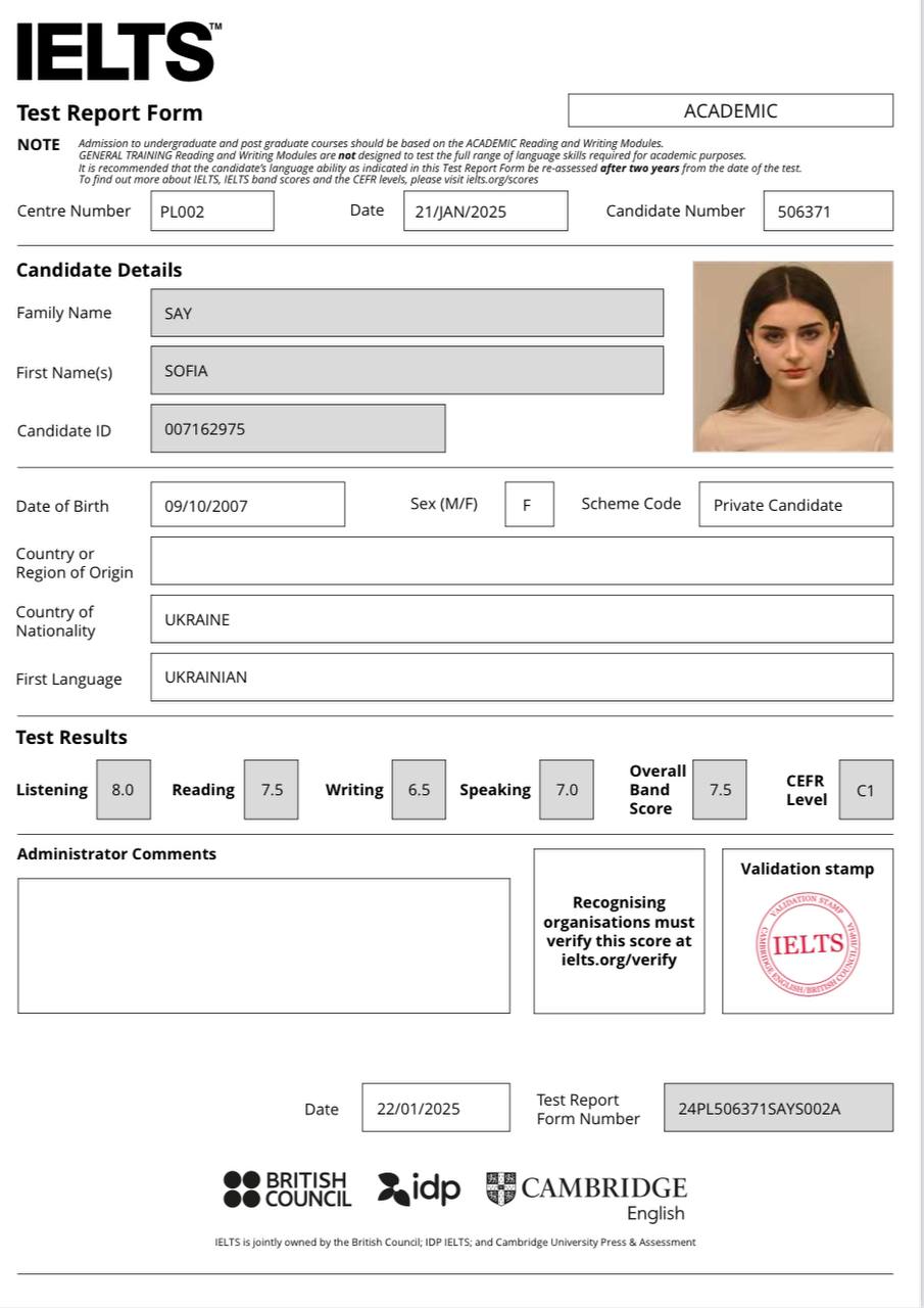 Hey!🌟 Мене звати Софія, я сертифікований викладач англійської (IELTS C1, НМТ 200) з дворічним досвідом. Брала участь у програмі ENGin, спілкувалася з носіями та навчалася сучасним методикам. Мої уроки живі, цікаві та допомагають впевнено говорити, думати і працювати англійською. Бонуси: персональні матеріали, лайфхаки та підтримка між заняттями🤩