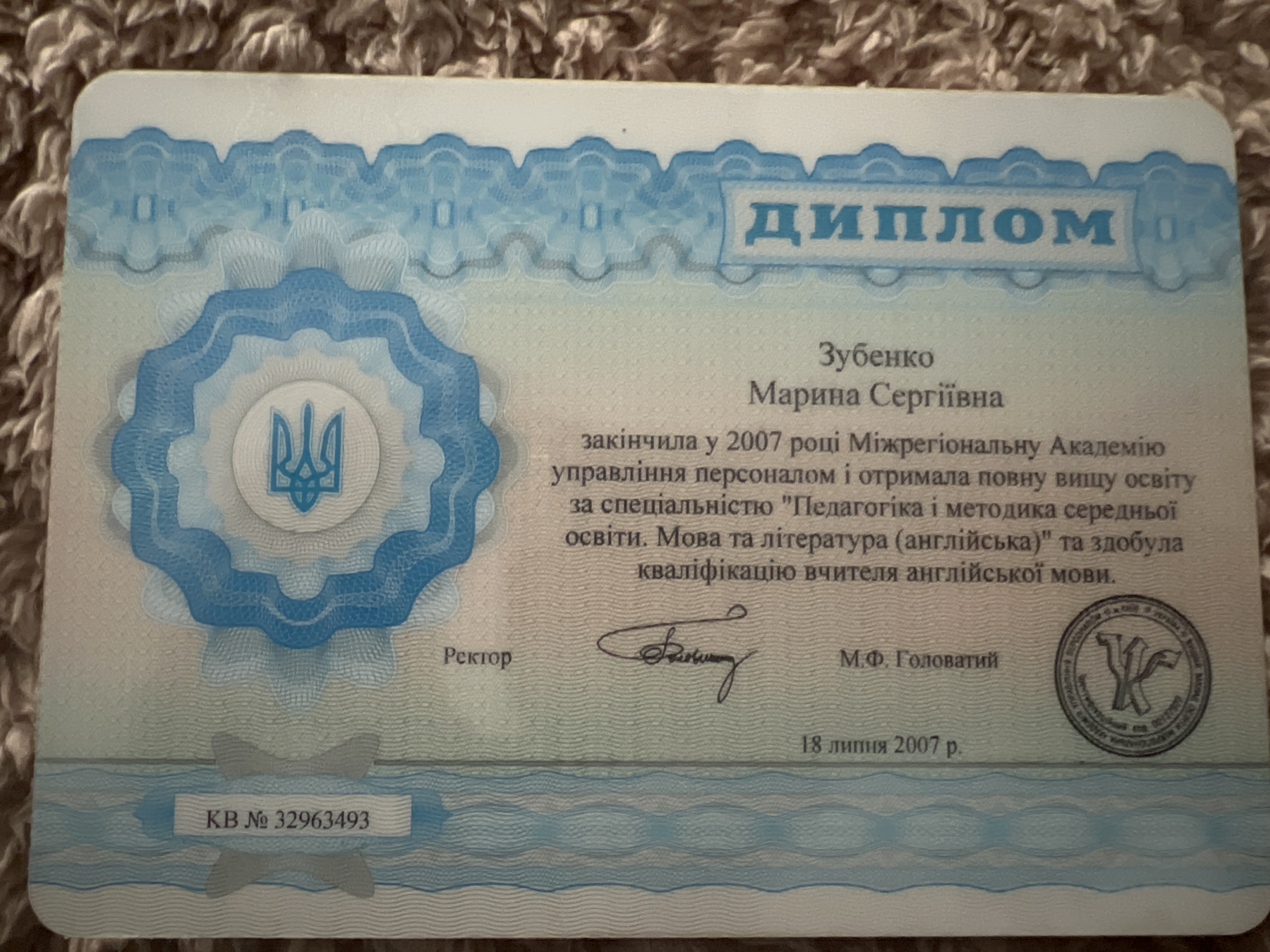 Мене звуть Марина. Якщо ви шукаєте вчителя для своєї дитини, яка допоможе у вивченні англійської мови, виконанні домашнього завдання, то у мене для вас чудова пропозиція! Я пропоную індивідуальні заняття з англійської мови для студентів з 1 по 5 клас, працюю з початковою школою та маю досвід викладання англійської мови з дітьми.