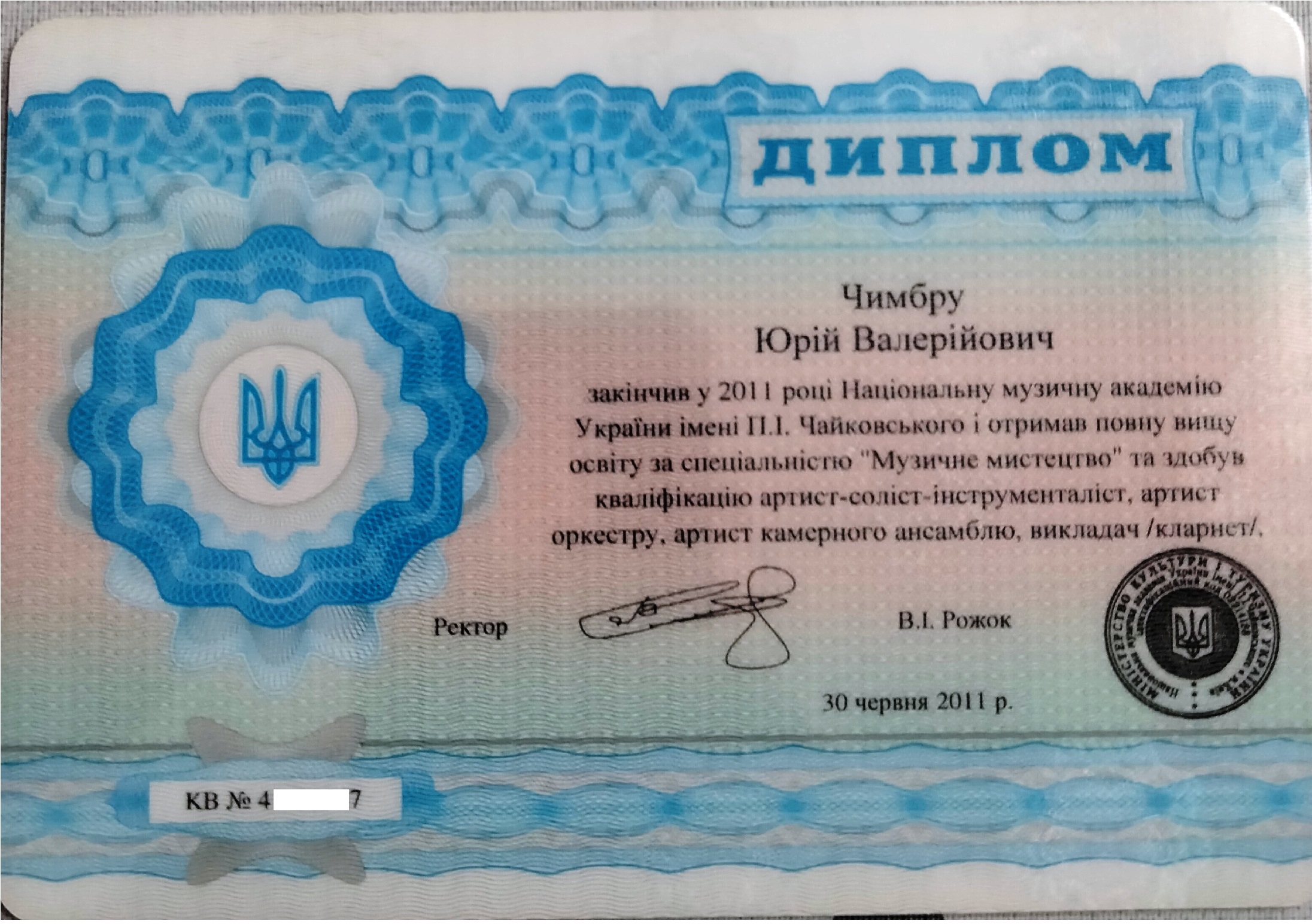 Національна музична академія ім. Чайковського (НМАУ), Фахівець, 2011 рік.