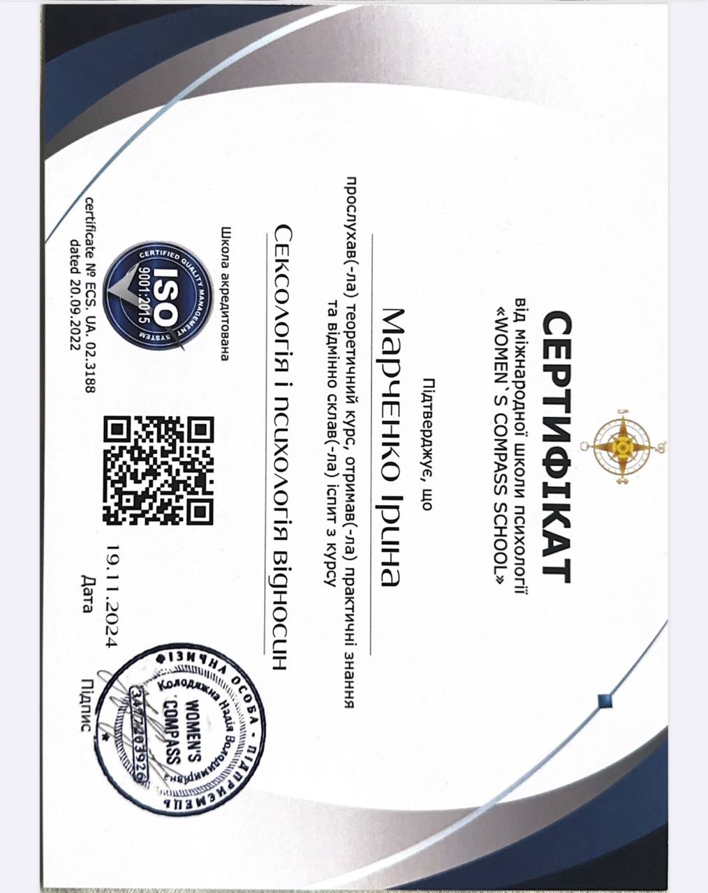 Магістр психології. - Працюю із зайвою вагою. Відновлюю гармонійні стосунки з тілом та їжею, щоб результати були стійкими та довгостроковими. - Зцілюю емоційні рани. Працюю з травмою та наслідками стресу. - Допомагаю знайти гармонію у стосунках. Використовую глибокі знання сексології та психології для побудови здорових зв'язків.