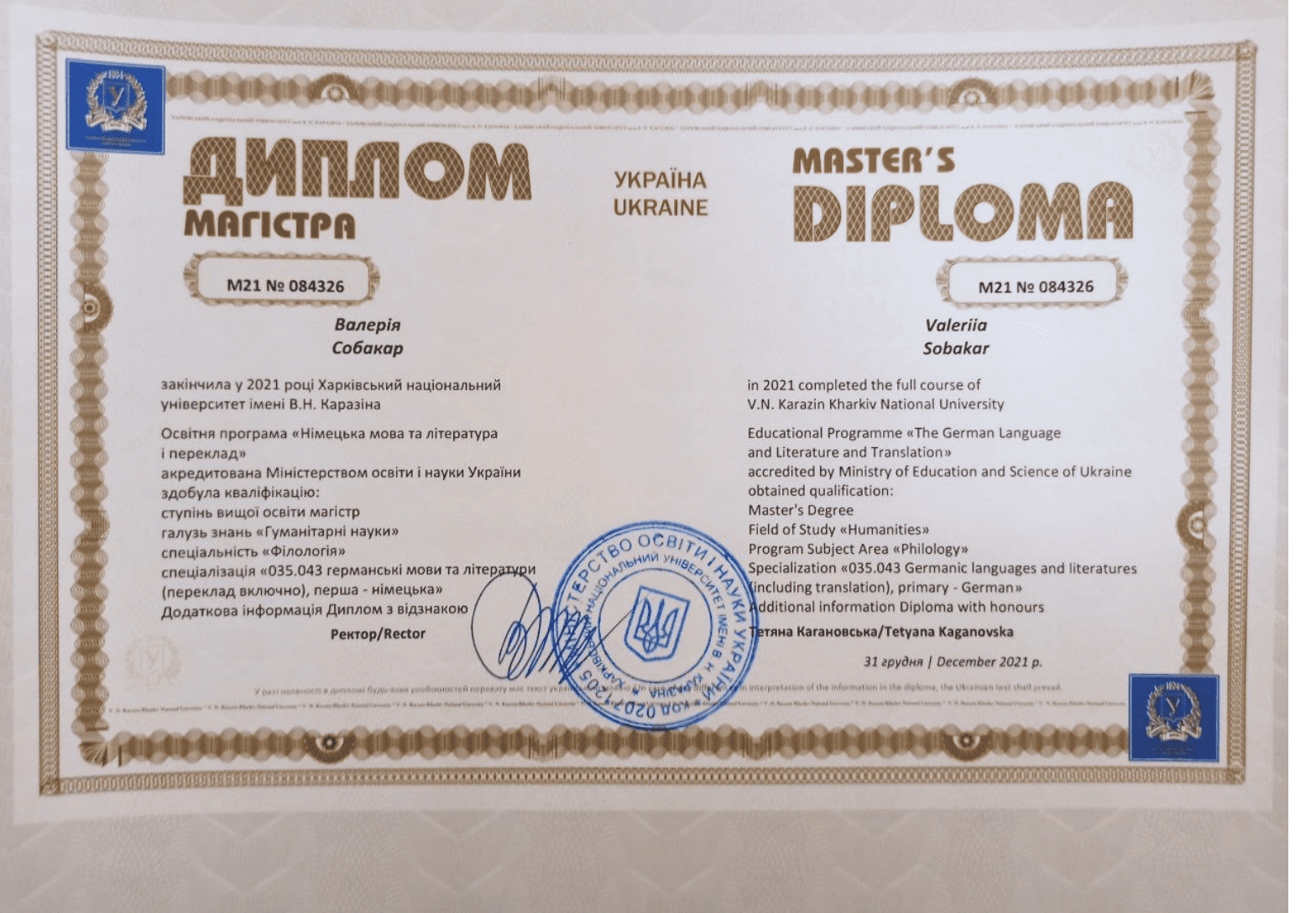 Співпрацювала з носіями мови у проєктах, спрямованих на підготовку студентів до роботи в німецькому середовищі. Мої дипломи та сертифікати підтверджують фаховість і глибокі знання методики викладання.