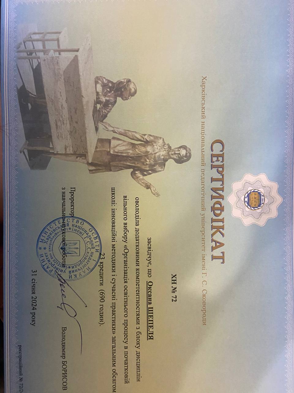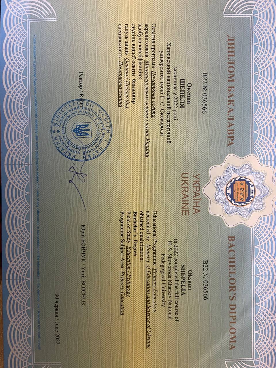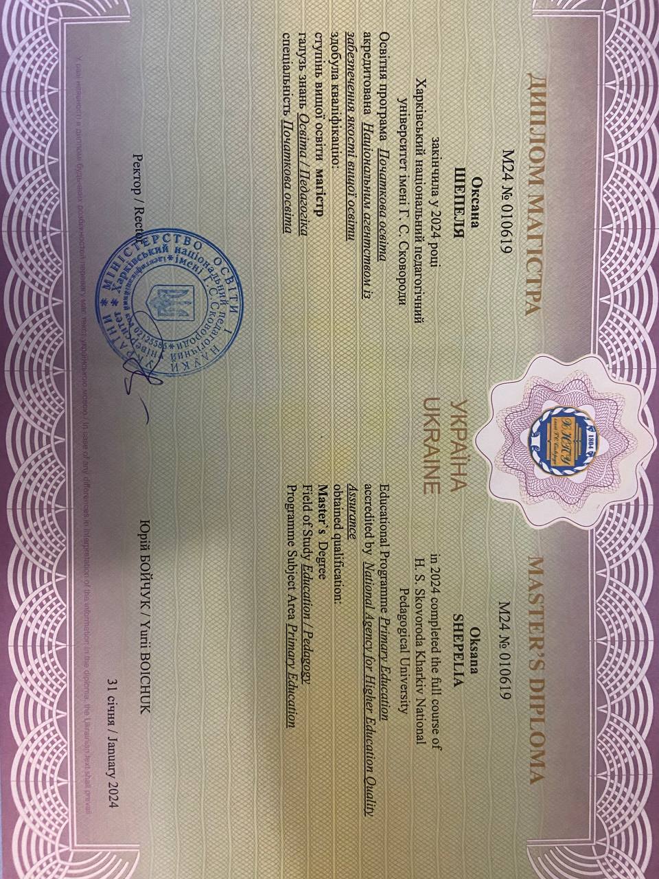 Початкова школа — сучасний підхід до навчання Маю 3 роки досвіду роботи в школі. Навчалася в Харківському національному педагогічному університеті імені Г.С. Сковороди за спеціальністю «Початкова освіта».