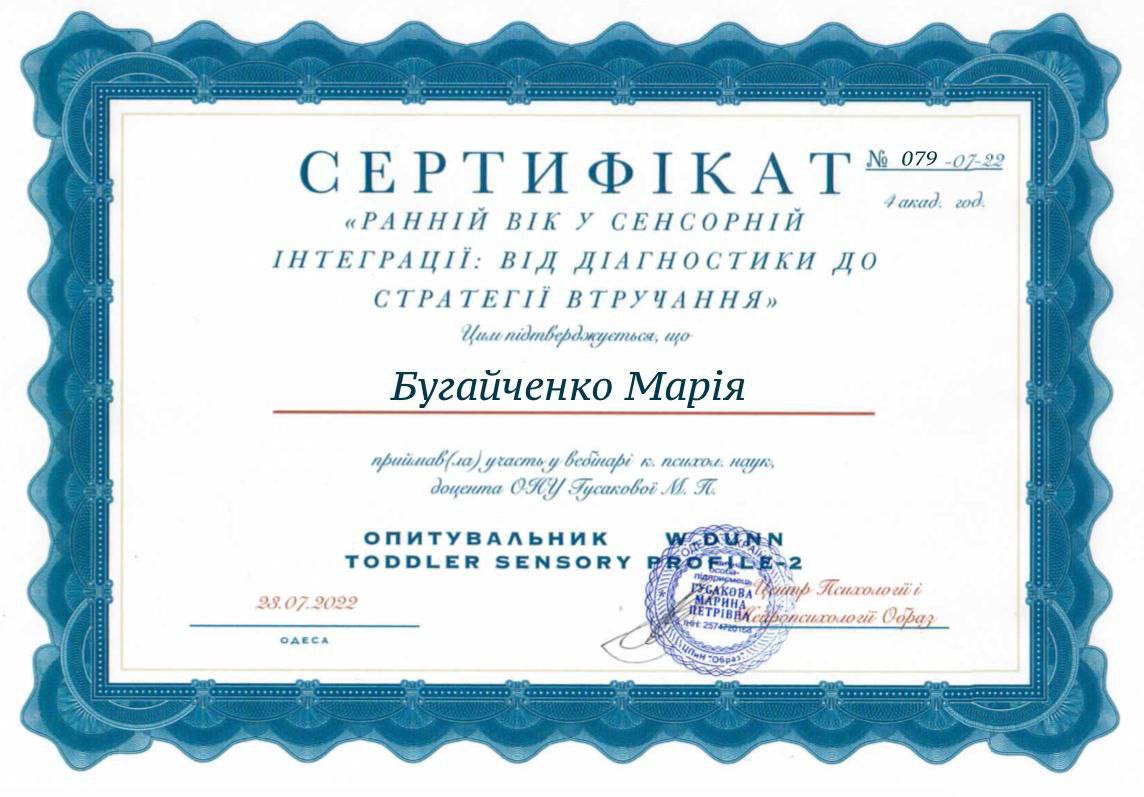 Я - логопед, спеціаліст зі сенсорної інтеграції, працюю з дітьми дошкільного та шкільного віку з мовленнєвими, сенсорними та моторними труднощами. Маю досвід роботи з дітьми із затримкою мовленнєвого розвитку, дизартрією, диспраксією, сенсорними порушеннями.