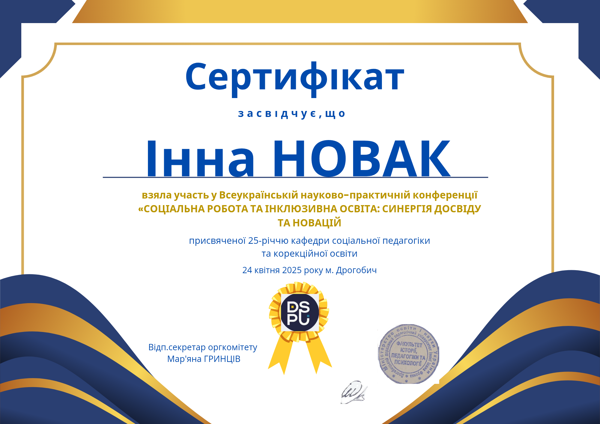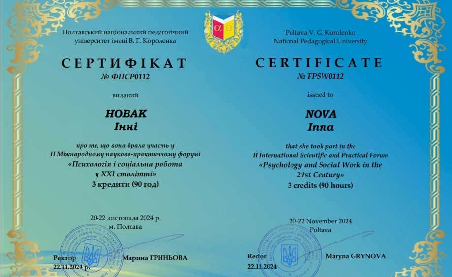 Новак Інна Михайлівна, 20 років, здобую вищу освіту, маю авторські методики викладання. Вашим дітям зі мною буде цікаво пізнавати світ знань :)