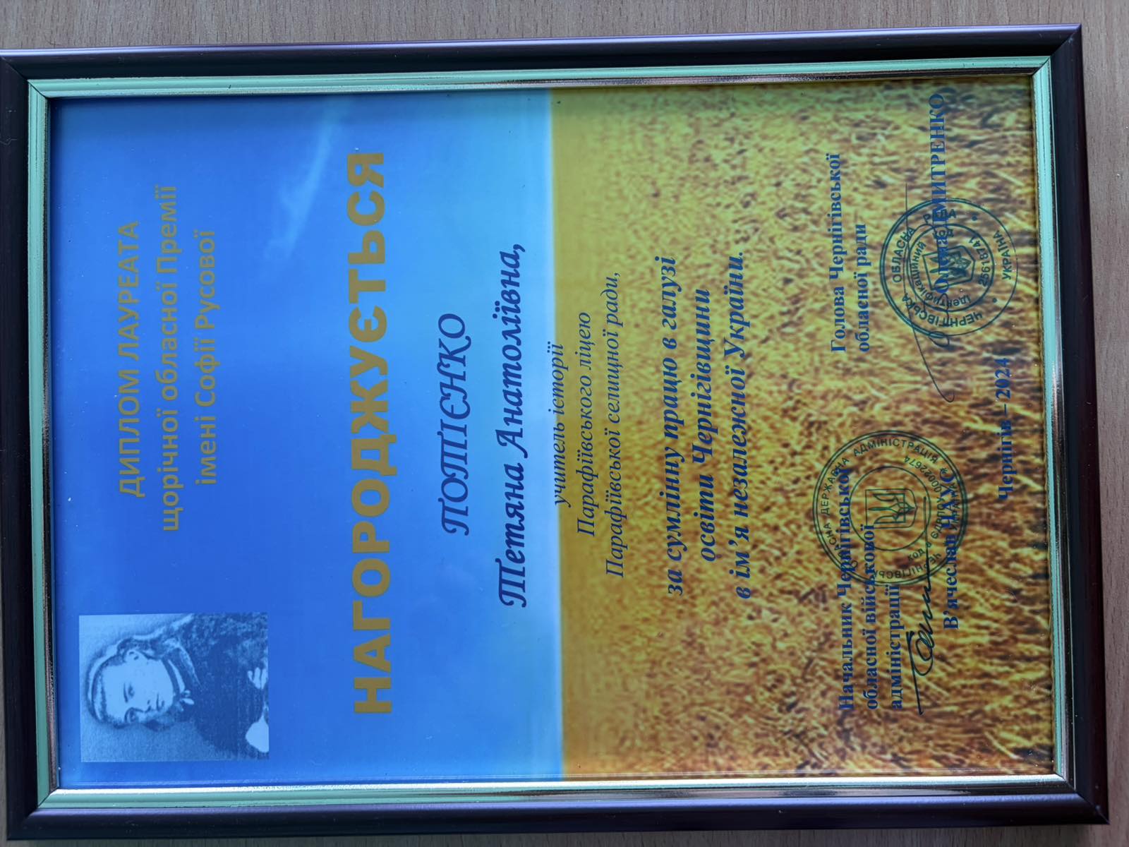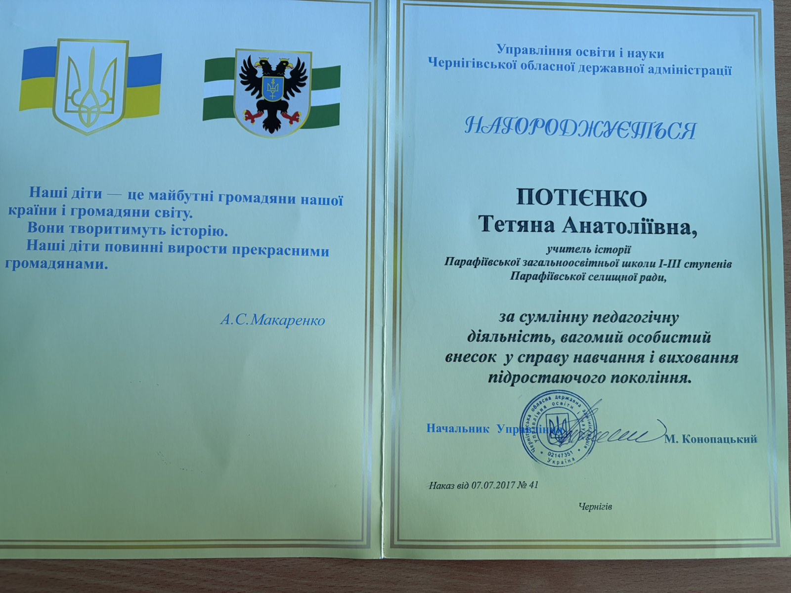 Маю педагогічний досвід 30 років. Викладаю в Парафіївському ліцеї Парафіївської селищної ради Викладаю історію України, всесвітню історію, правознавство, громадянську освіту. Маю крім вчителя історії та права, освіту вчителя початкових класів. Люблю і знаю свій предмет. Готую учнів учасників Малої академії наук. Умію пояснити доступно .