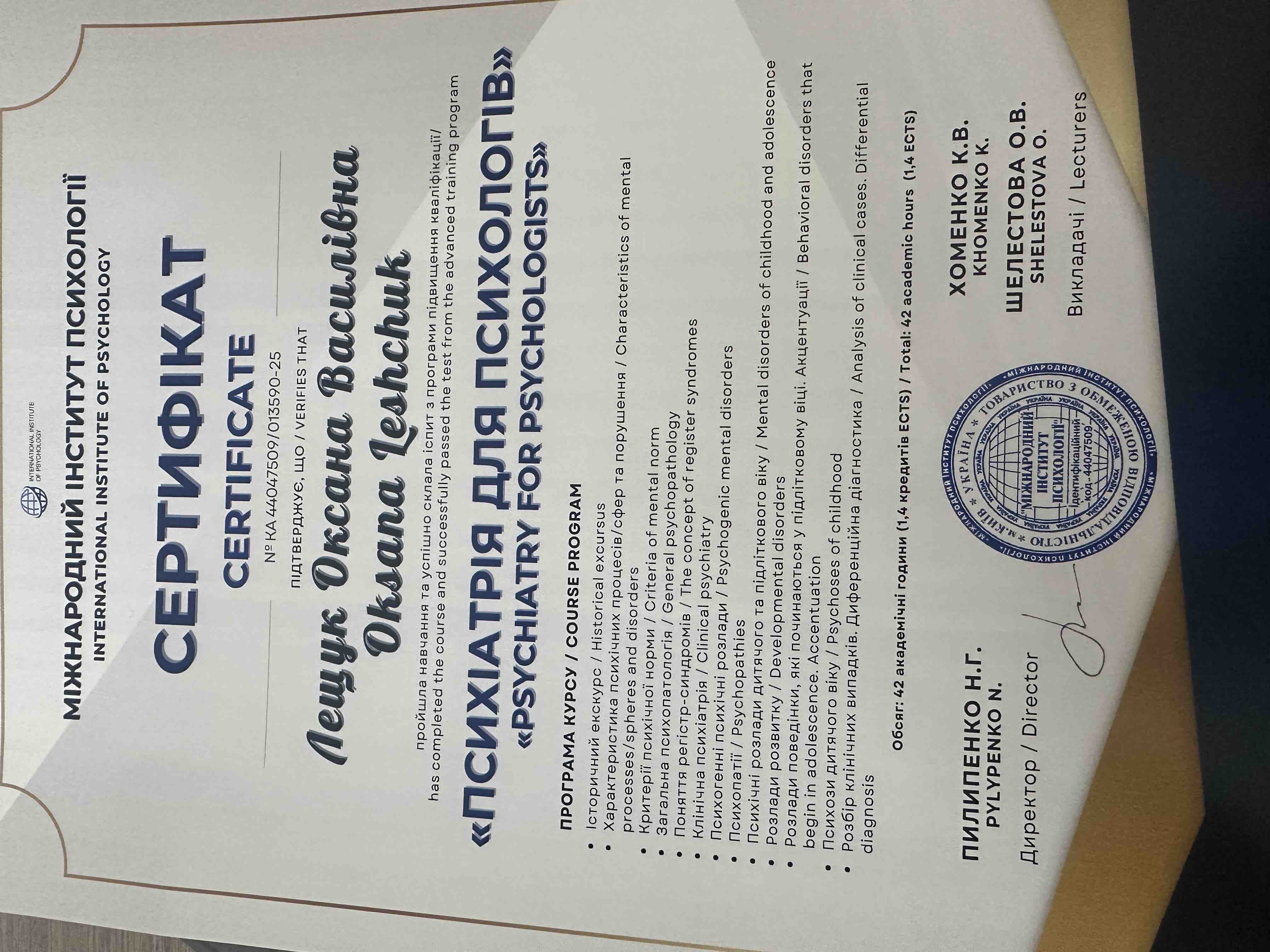 Проводжу консультації з батьками для визначення рівня розвитку дитини та психологічні консультації з дітьми та підлітками.