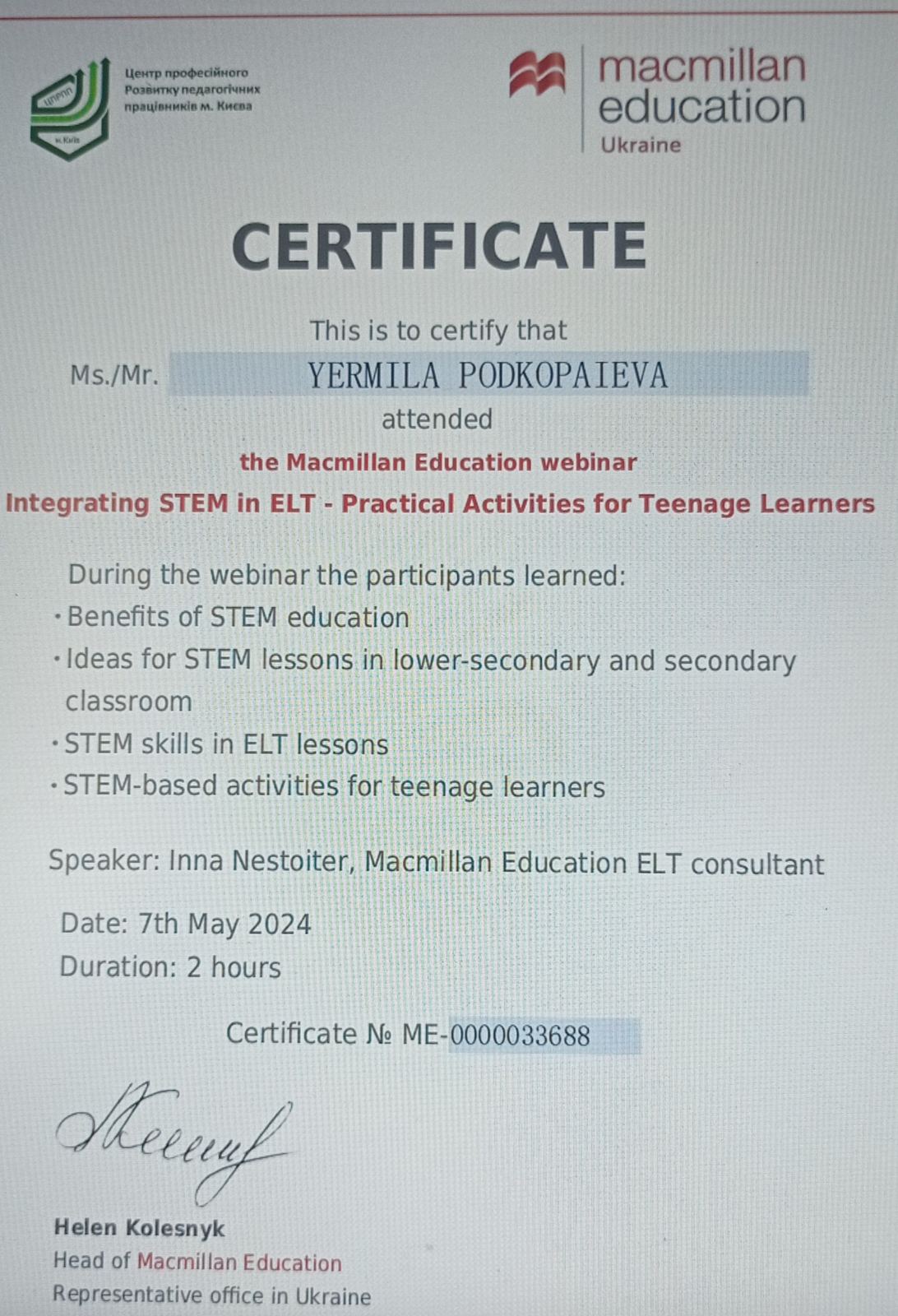 Привіт! Я Міла — дипломований вчитель англійської мови з багаторічним досвідом викладання (дипломи та сертифікати див. фото).