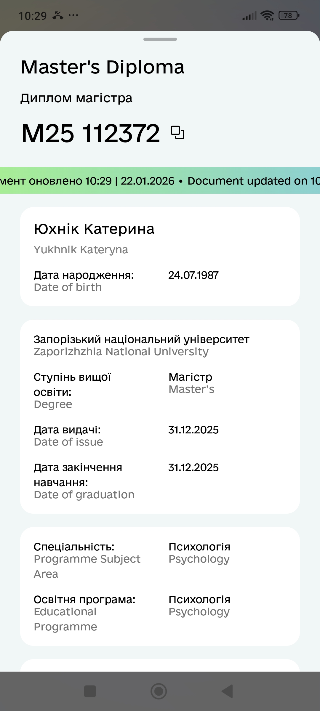 Доброго дня! Мене звати Катерина,я магістр психології. Працюю з тревогою,панічними атаками .