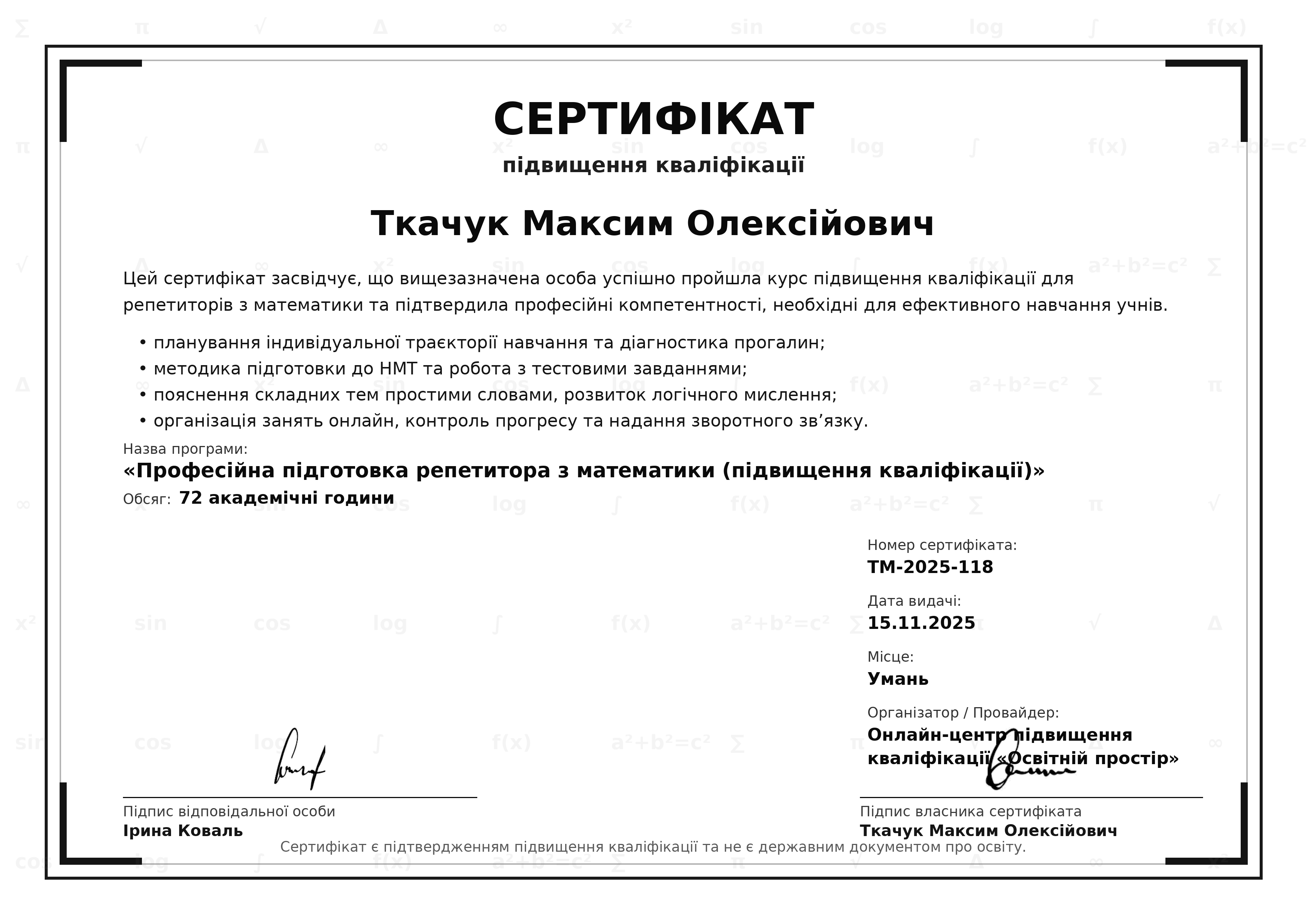 📢 РЕПЕТИТОР | 7+ РОКІВ ДОСВІДУ Математика(Шкільна, вища) • Фізика • Укр. мова • Географія • Хімія ✅ Підготовка до НМТ / ДПА ✅ Підвищення оцінок ✅ Контрольні та задачі з усіх шкільних (і не тільки) предметів 💻 Онлайн: Zoom / Telegram / Viber 💰 Доступні ціни | 🕒 Гнучкий графік 📞 068... 🎯 Швидко. Зрозуміло. На результат.