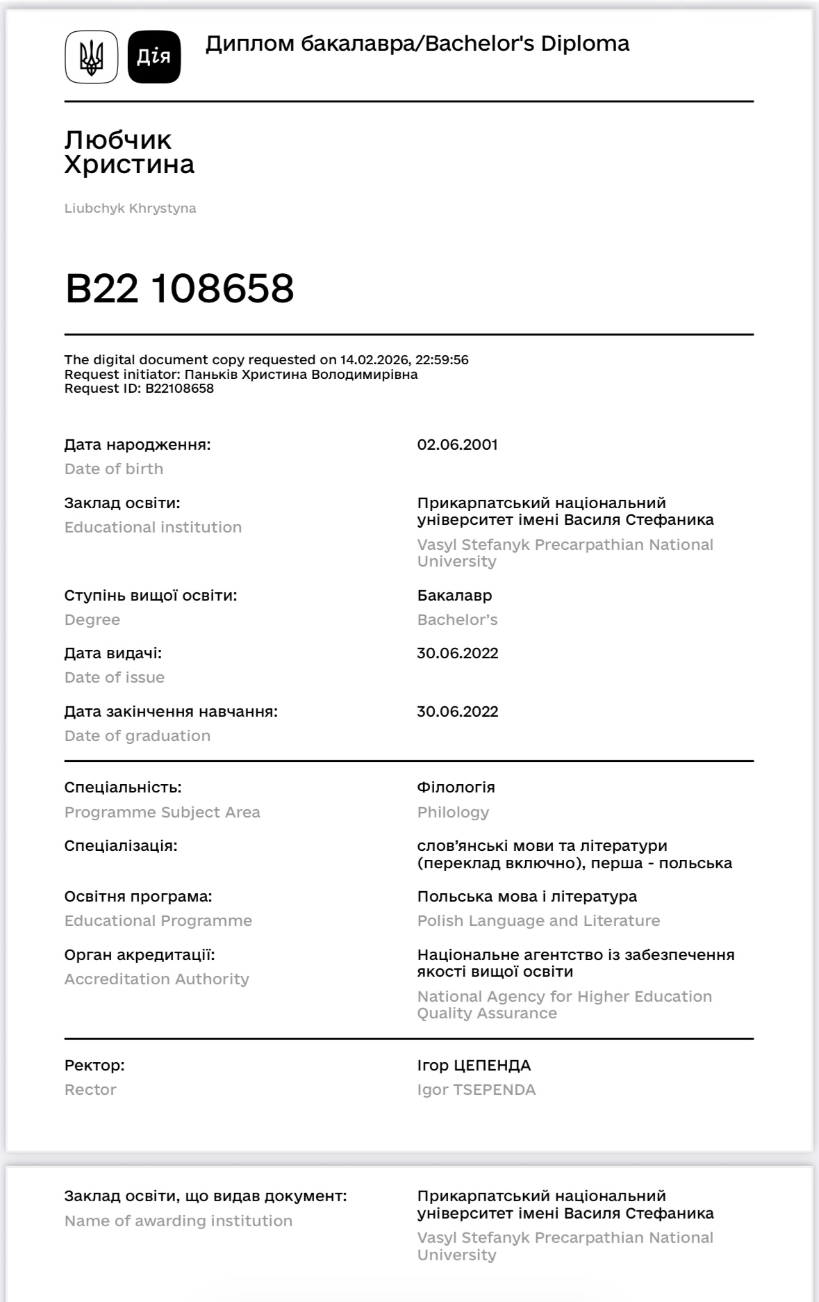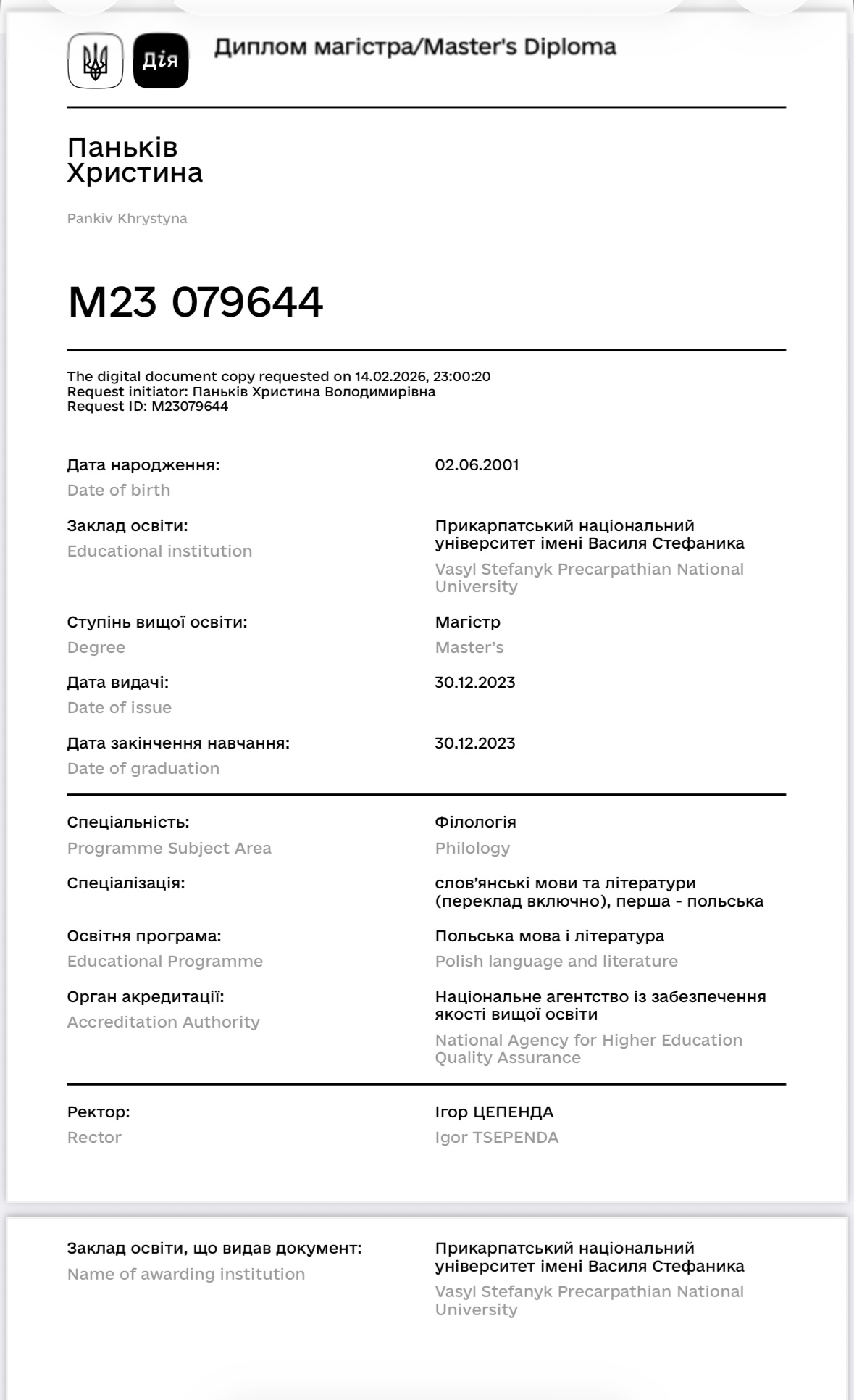 Мене звати Христина. У 2024 році закінчила Прикарпатський національний університет за спеціальністю «Філологія: польська мова та література». Працюю викладачем польської мови, допомагаю учням системно та впевнено опанувати мову.