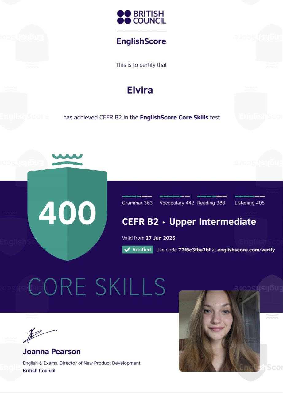 Вітаю! Мене звати Ельвіра, я викладач англійської мови для дітей. Мої заняття це передусім про довіру та емоційний комфорт. Я не сварю за помилки, а навпаки допомагаю повірити у власні сили та адаптую темп заняття під під кожну дитину. Я викладач з яким не страшно запитувати й помилятися.