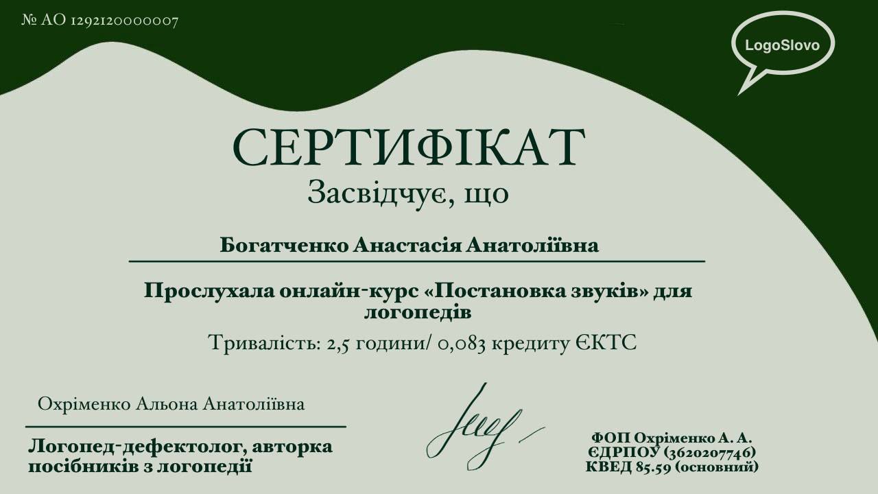 Постійно розвиваюся у своїй професії: вивчаю фахову літературу, проходжу вебінари та беру участь у конференціях. Отримані знання одразу застосовую на практиці, щоб заняття були ефективними та відповідали сучасним підходам у корекції мовлення. Працюю з дітьми та дорослими. Створюю спокійну, комфортну та інтерактивну атмосферу, яка сприяє легкому навчанню та поступовому досягненню результатів. Проводжу онлайн та офлайн заняття. Вартість консультації або заняття — 300 грн / 30 хв. Застосовую індивідуальний підхід до кожного клієнта та сучасні логопедичні методики. Маю досвід роботи з різними мовленнєвими труднощами, зокрема: — затримка мовленнєвого розвитку (ЗНМ) — особливості комунікації (РАС) — порушення плавності мовлення (заїкання) — втрата мови внаслідок травм або захворювань (афазія) Заняття спрямовані не лише на постановку звуків, а й на комплексний розвиток мовлення. Пояснюю процес роботи та даю детальні рекомендації для закріплення результату вдома.