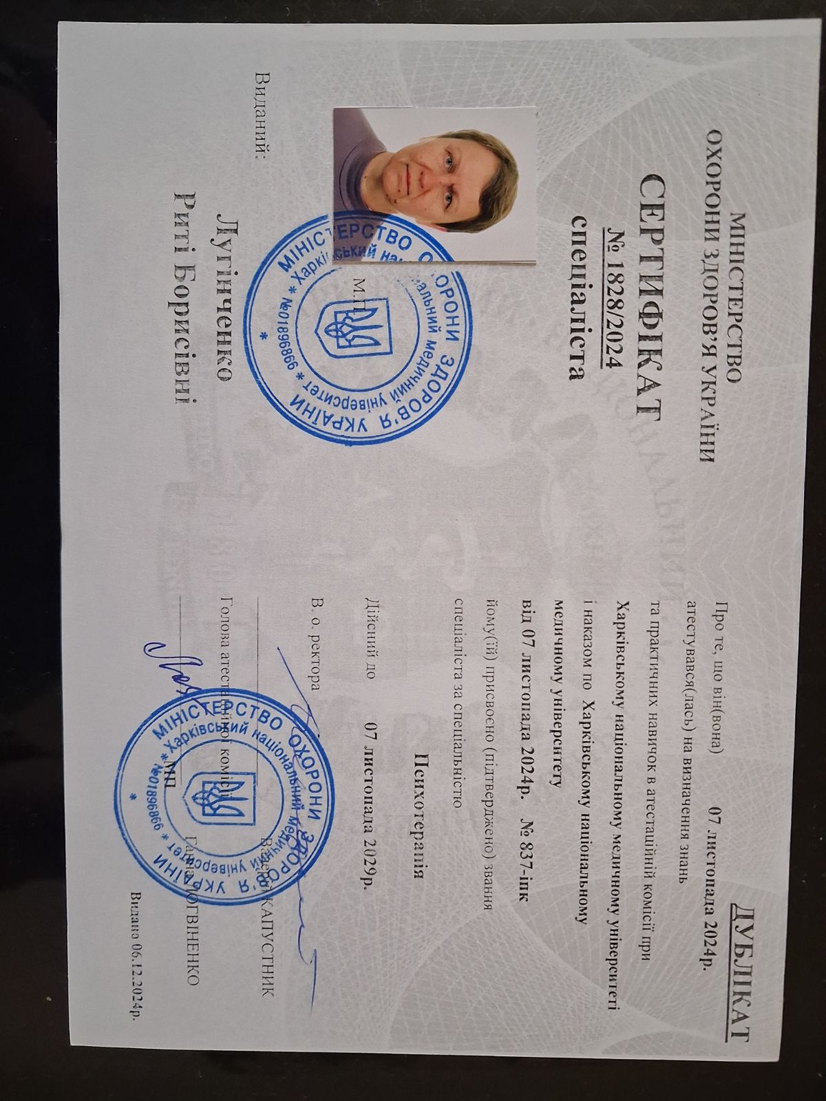 Клінічний психолог, психотерапевт. Досвід роботи 18 років. Працюю як з дорослими так і дітьми. Маю досвід роботи в клінічних установах. Спеціалізуюсь на психосоматичних розладах. маю сертифікати з впровадження в практику КПТ, БСТ, НЕТ. Працюю за клінічними настановами НСЗУ. Співпрацюю з клініцистами.