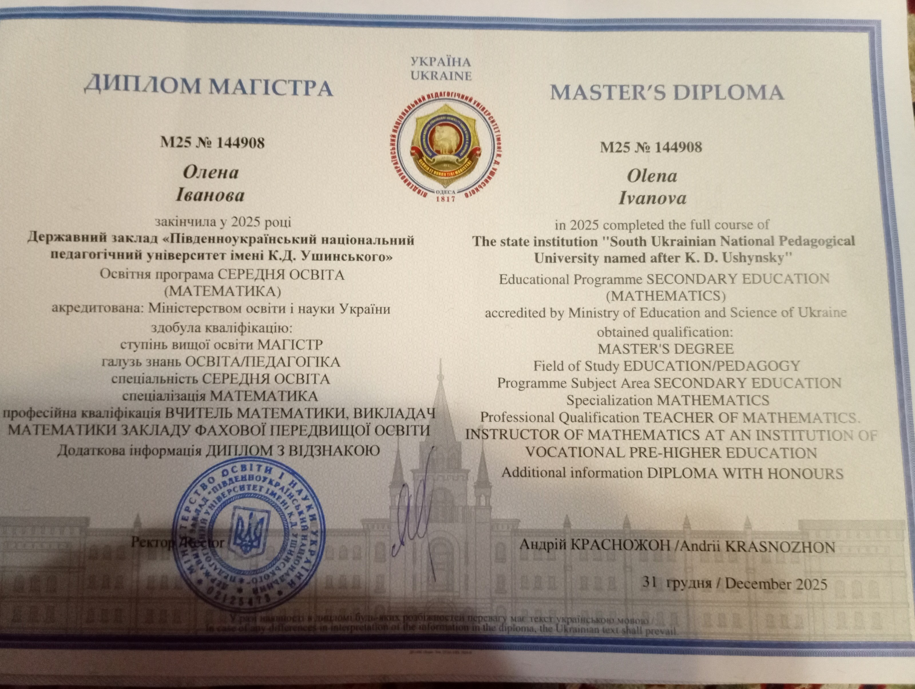 Математику викладаю вже більше 8 років, маю вищу математичну освіту та вищу категорію. Також маю навик у викладанні інформатики, географії та екологічних наук.
