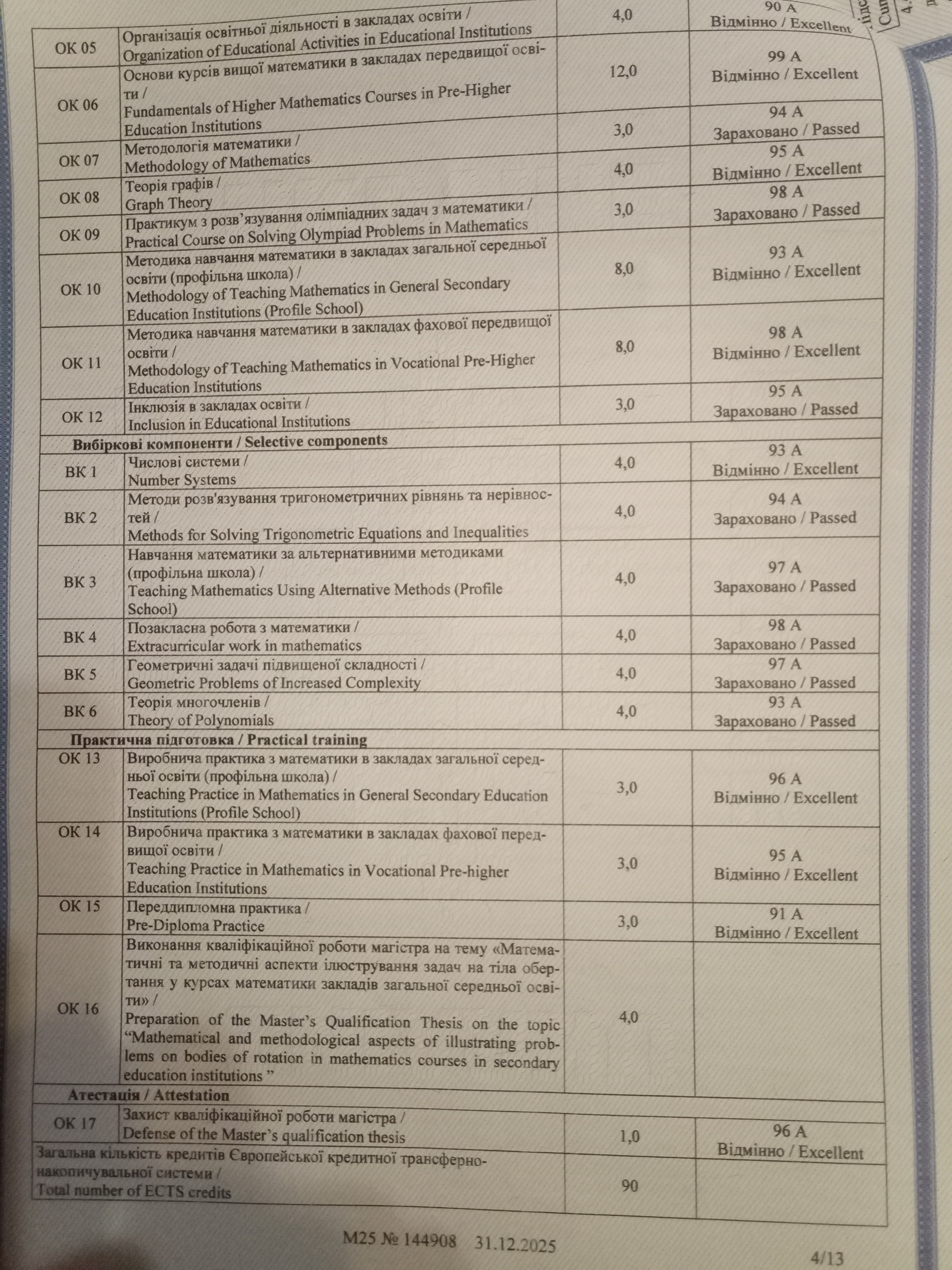 Деталі про досвід викладання: