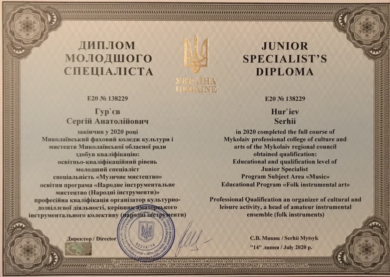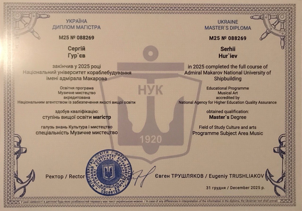 Освіта: магістратура за спеціальністю «Музичне мистецтво»