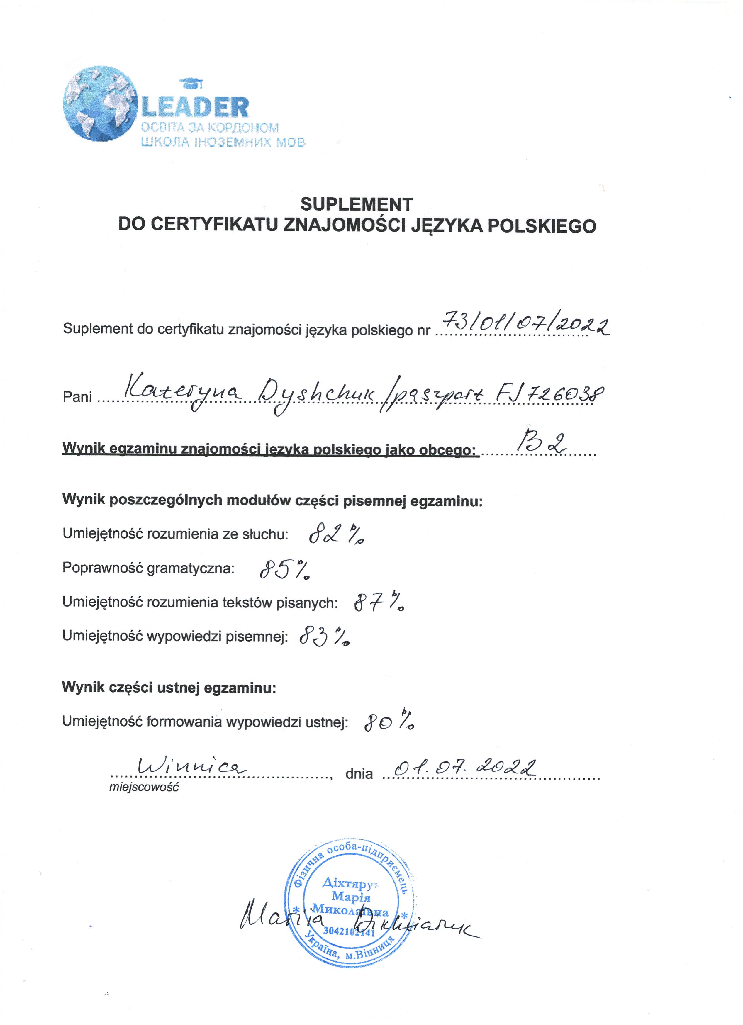 Моя польська мова — це не лише підручники, а щоденна практика в академічному та професійному середовищі. Я сама пройшла шлях від початківця до вільного володіння, тому точно знаю, з якими труднощами стикаються учні, і як їх швидко подолати.