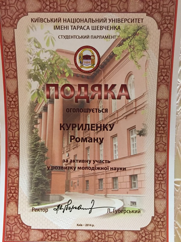Учасник всеукраїнських учнівських олімпіад та міжнародних студентських турнірів з природничо-наукових дисциплін. Аспірант КНУ імені Тараса Шевченка.