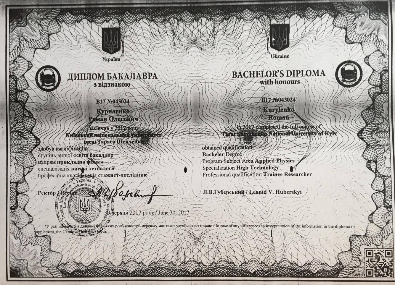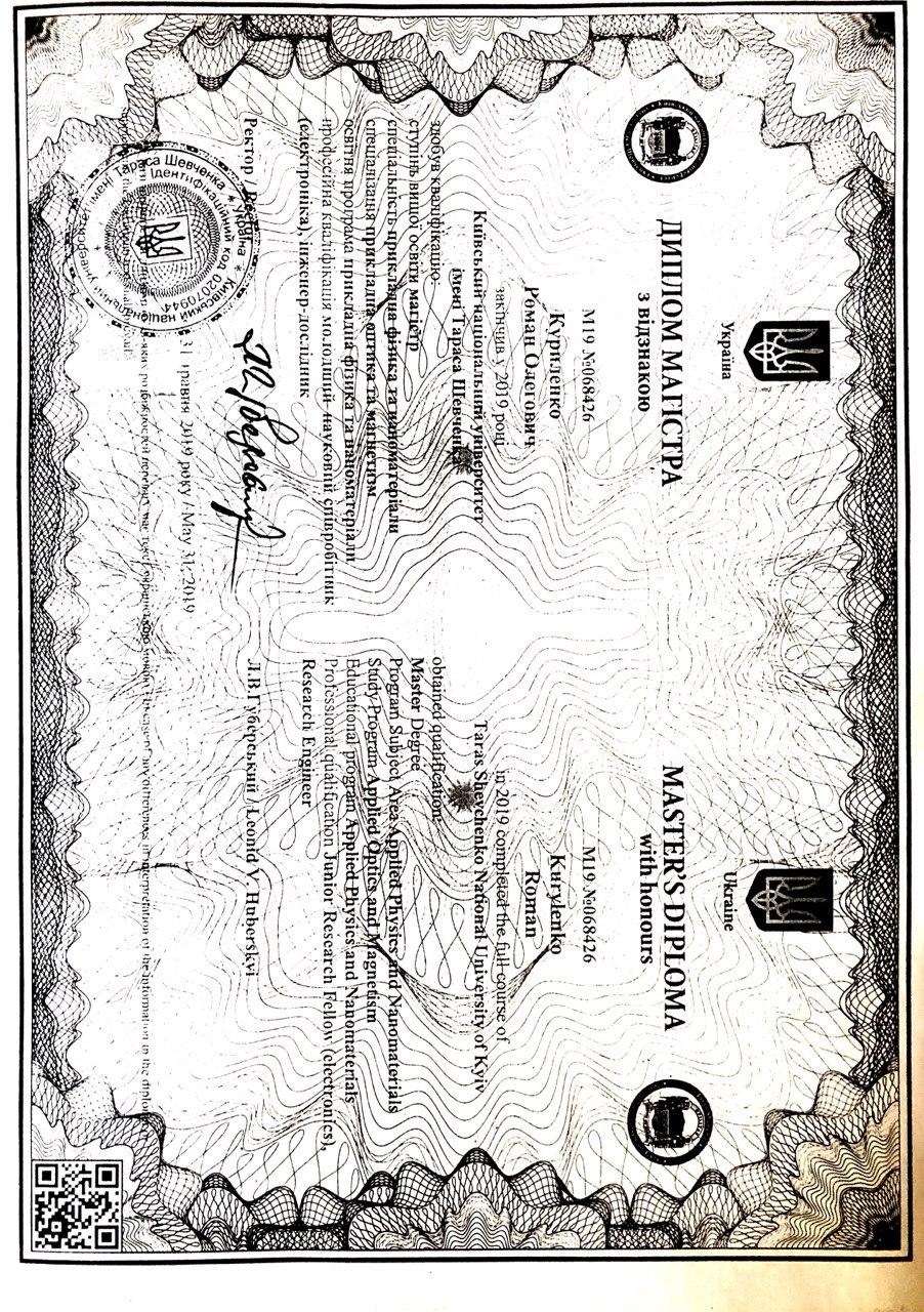 У 2019 році закінчив магістратуру факультету радіофізики, електроніки та комп'ютерних систем Київського національного університету імені Тараса Шевченка та отримав диплом з відзнакою. Наразі продовжую навчання в аспірантурі на базі цього ж факультету.