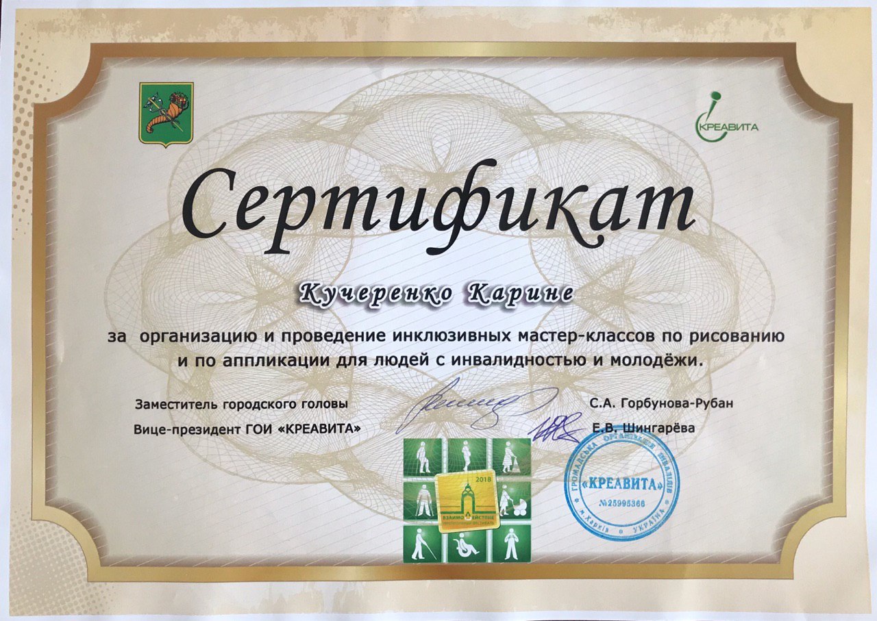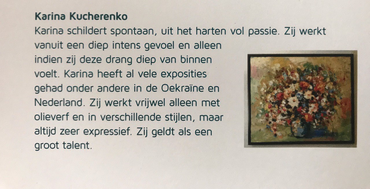У Харкові маю свою художню галерею та школу малювання. Проводила виставки картин у різних містах України, Європи (Нідерланди, Німеччина, Франція, Польща), Великій Британії (Лондон) та Канаді (Торонто).