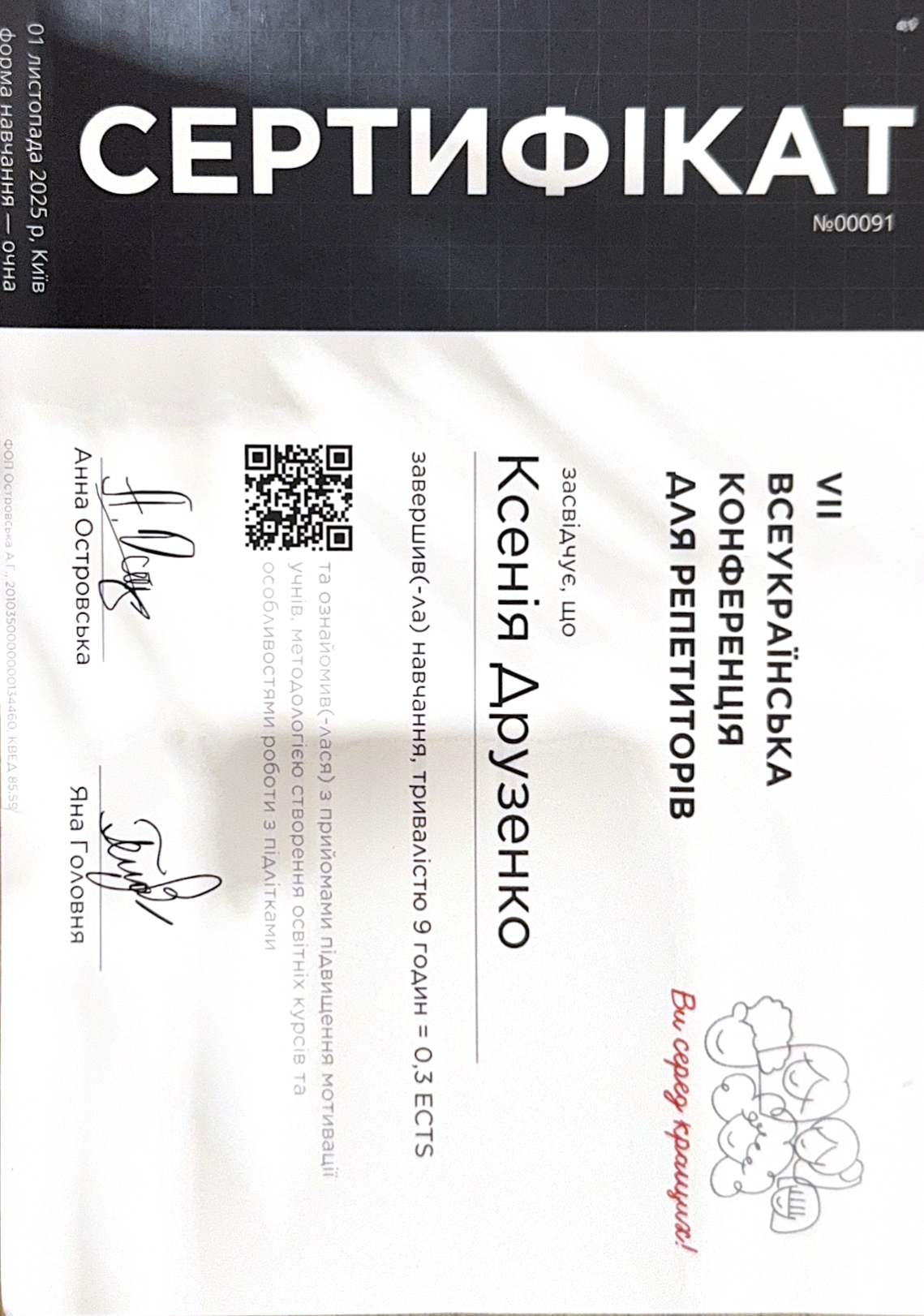- Легко пояснюю складні теми, щоб англійська стала зрозумілою та цікавою