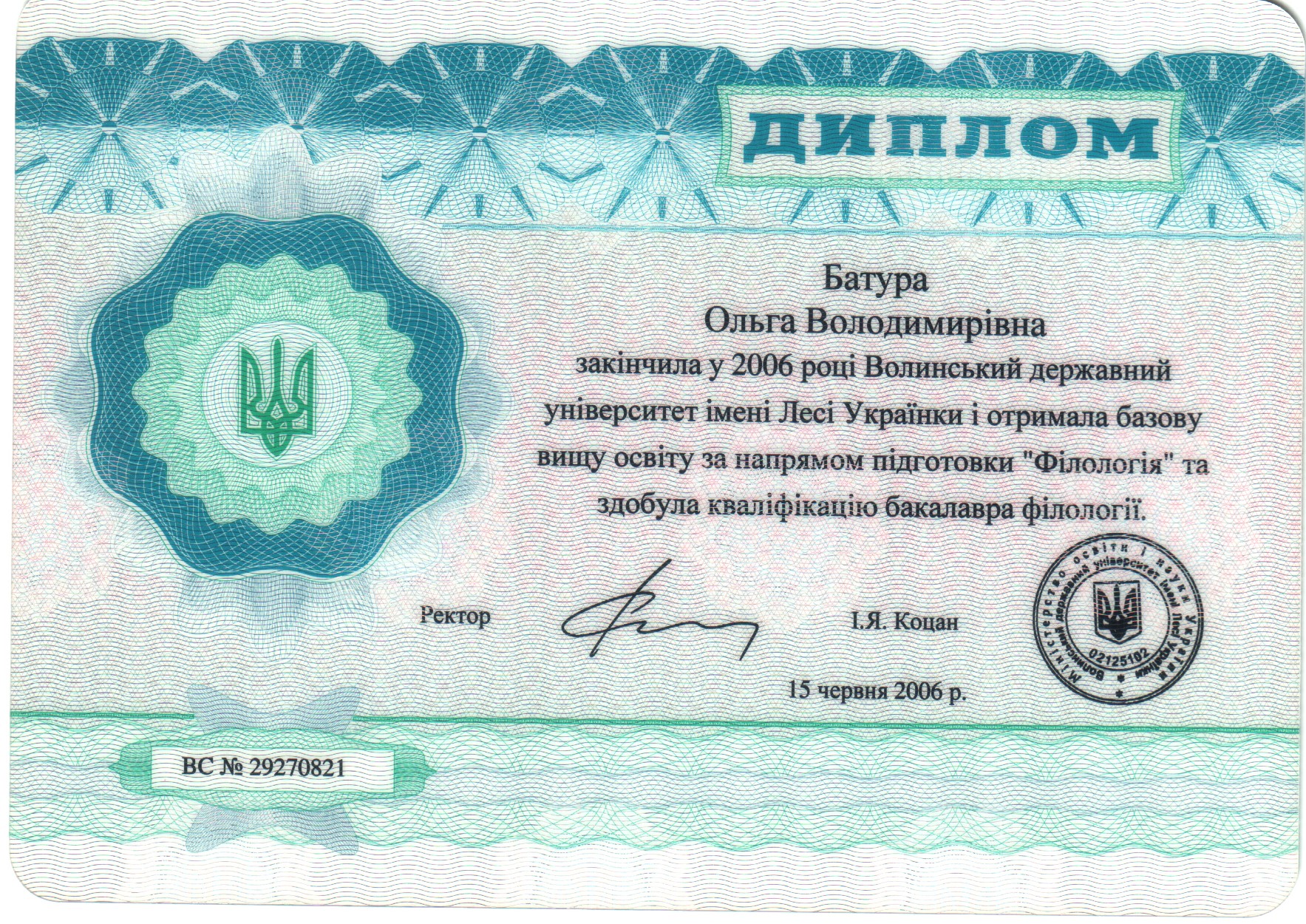 Наявність документів про освіту
