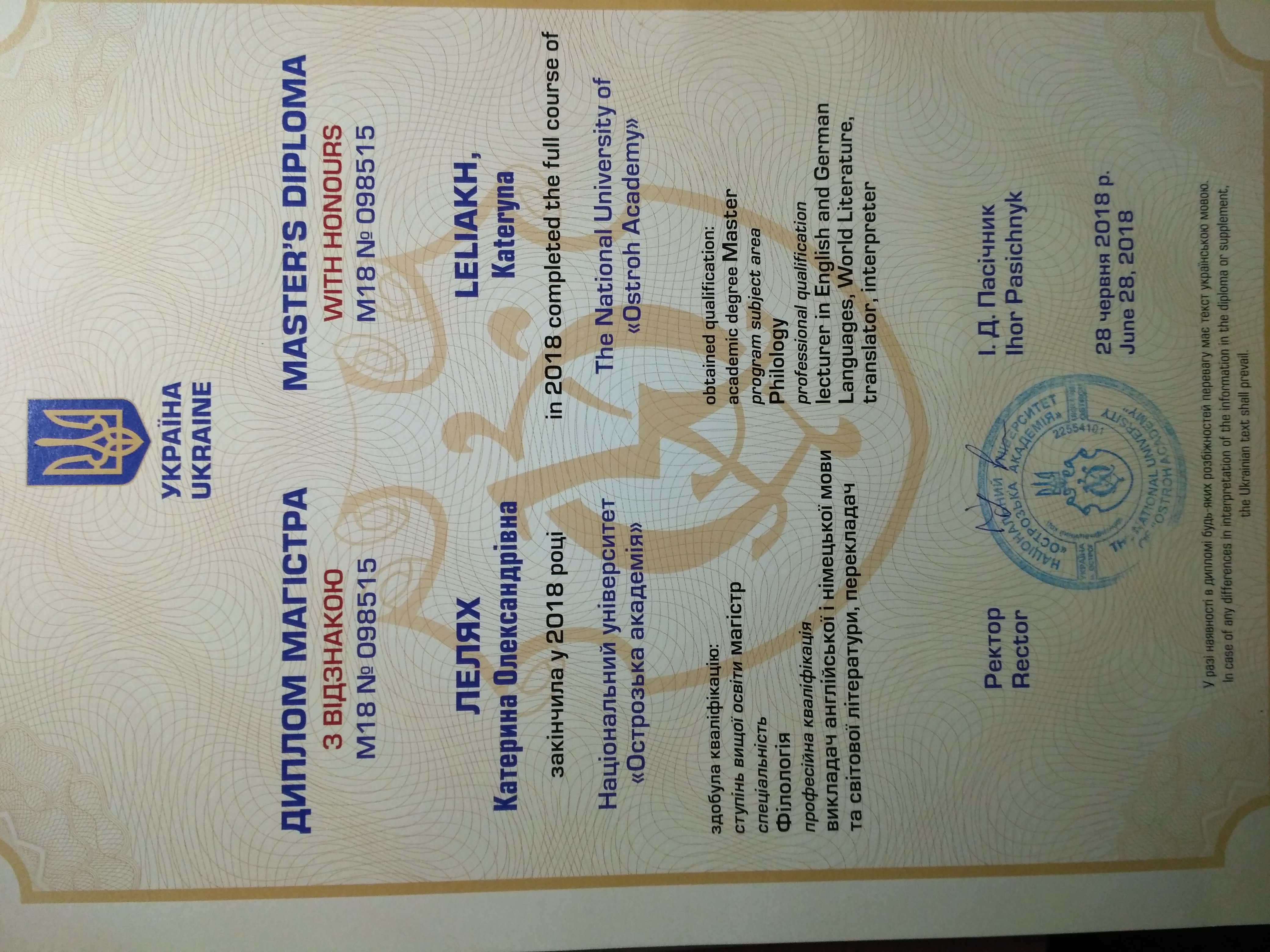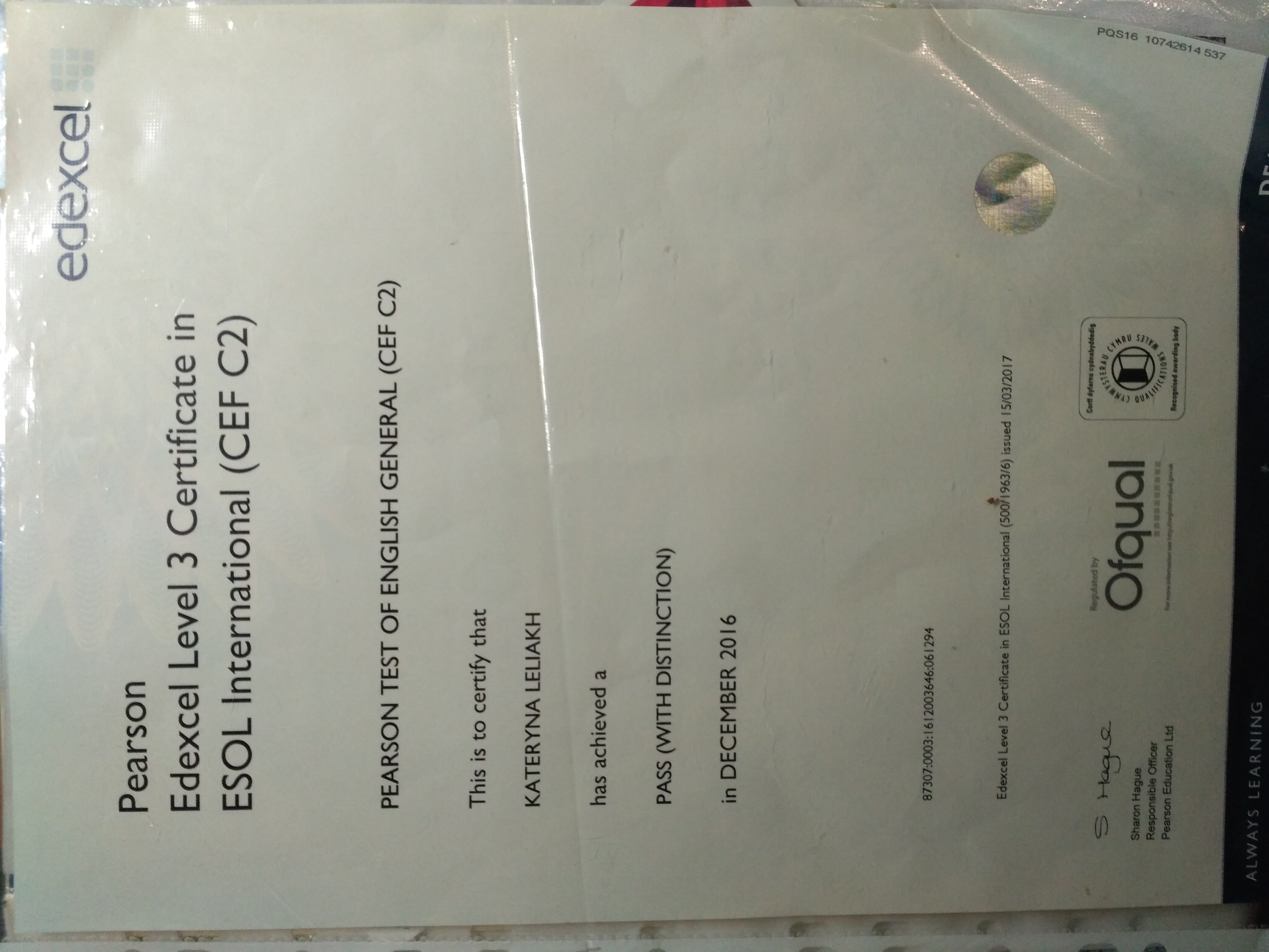 Band 7+ in IELTS; passed successfully FCE, CAE, CPE; I also work with teachers who aspire to reach a higher level of proficieny in English; my students have also got their dream jobs in international companies, have been accepted to the universities abroad or have moved to English-speaking countries.