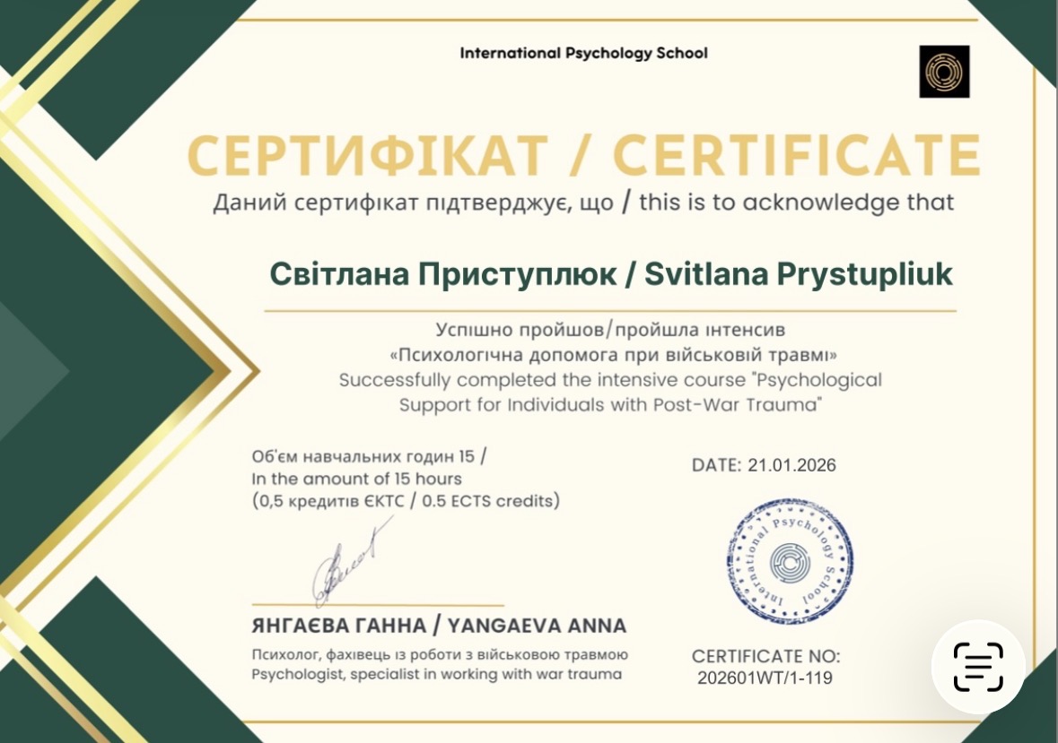 • Робота з травмою: безпечне відновлення цілісності після складних життєвих подій.