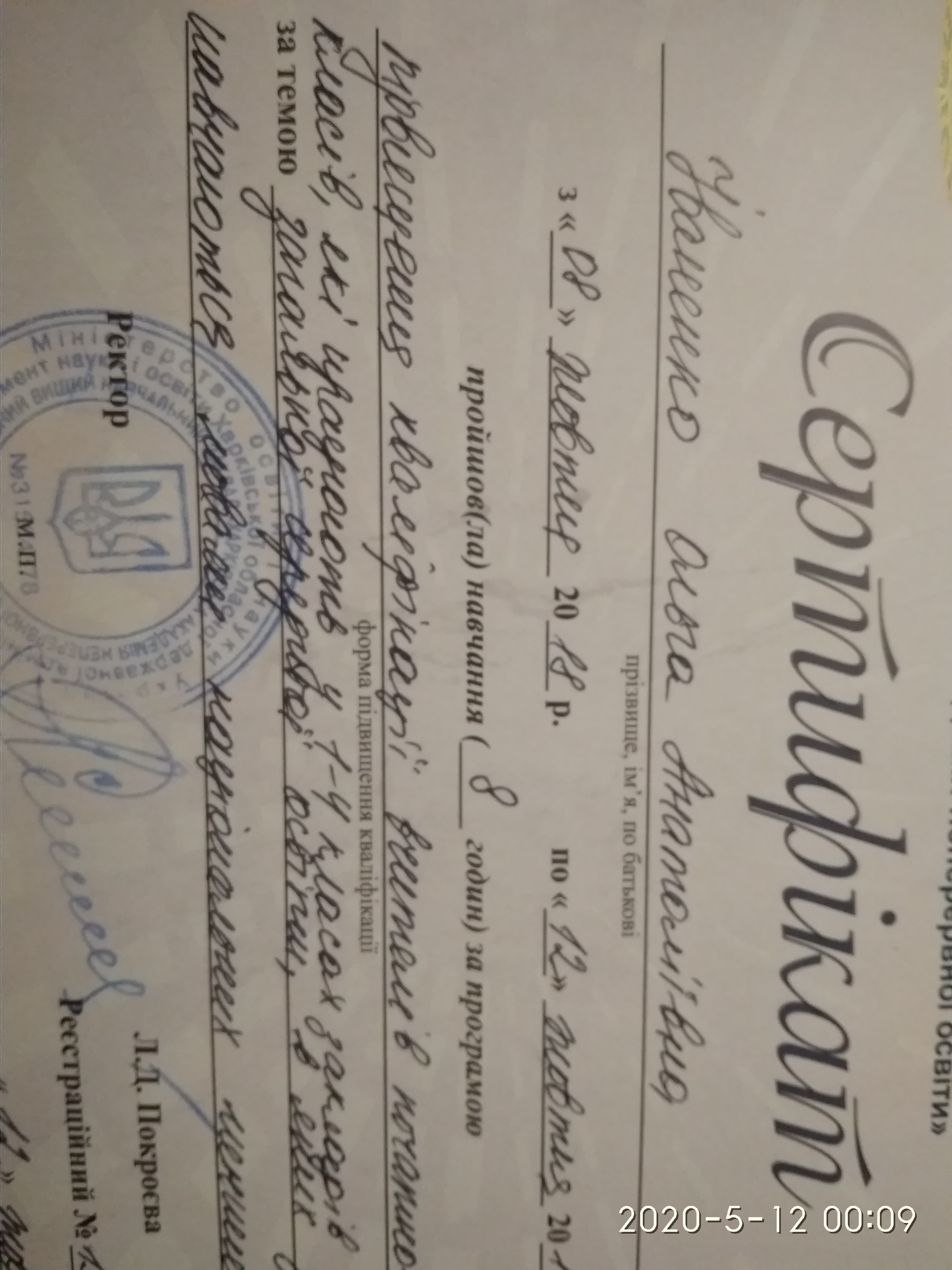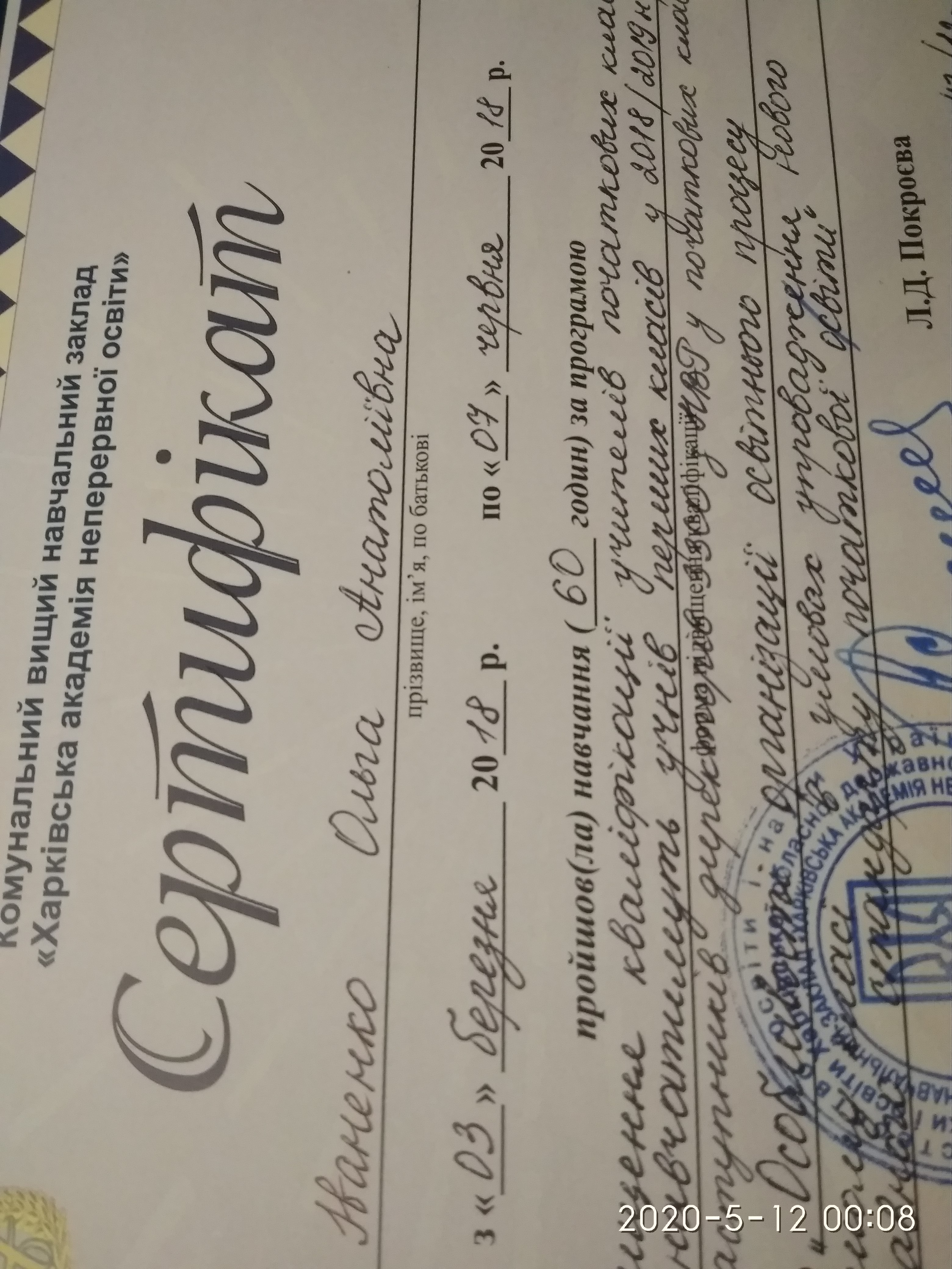 Про себе: використовую різні методи навчання. Відповідальна. Працюю на результат.