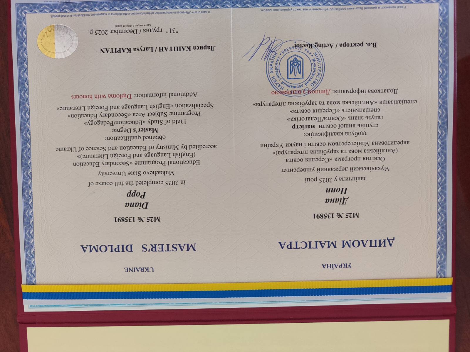 За першою освітою вчитель початкових класів з правом викладання англійської та німецької мов, далі завершила навчання на факультеті міжнародних економічних відносин Ужгородського національного університету, отримала спеціальність економіст-міжнародник, перекладач (англійська, німецька мови). Після цього вступила до Мукачівського державного університету та отримала диплом магістра з відзнакою за спеціальністю вчитель англійською мови та зарубіжної літератури. люблю працювати з дітьми та знаходжу індивідуальний підхід до кожного учня. Обговорення різних тем, дебати знижують мовний бар'єр та допомагають стати впевненішими в спілкуванні. Вивчення лексики за допомогою пісень та фільмів допоможуть краще розуміти носіїв мови та покращити вимову.