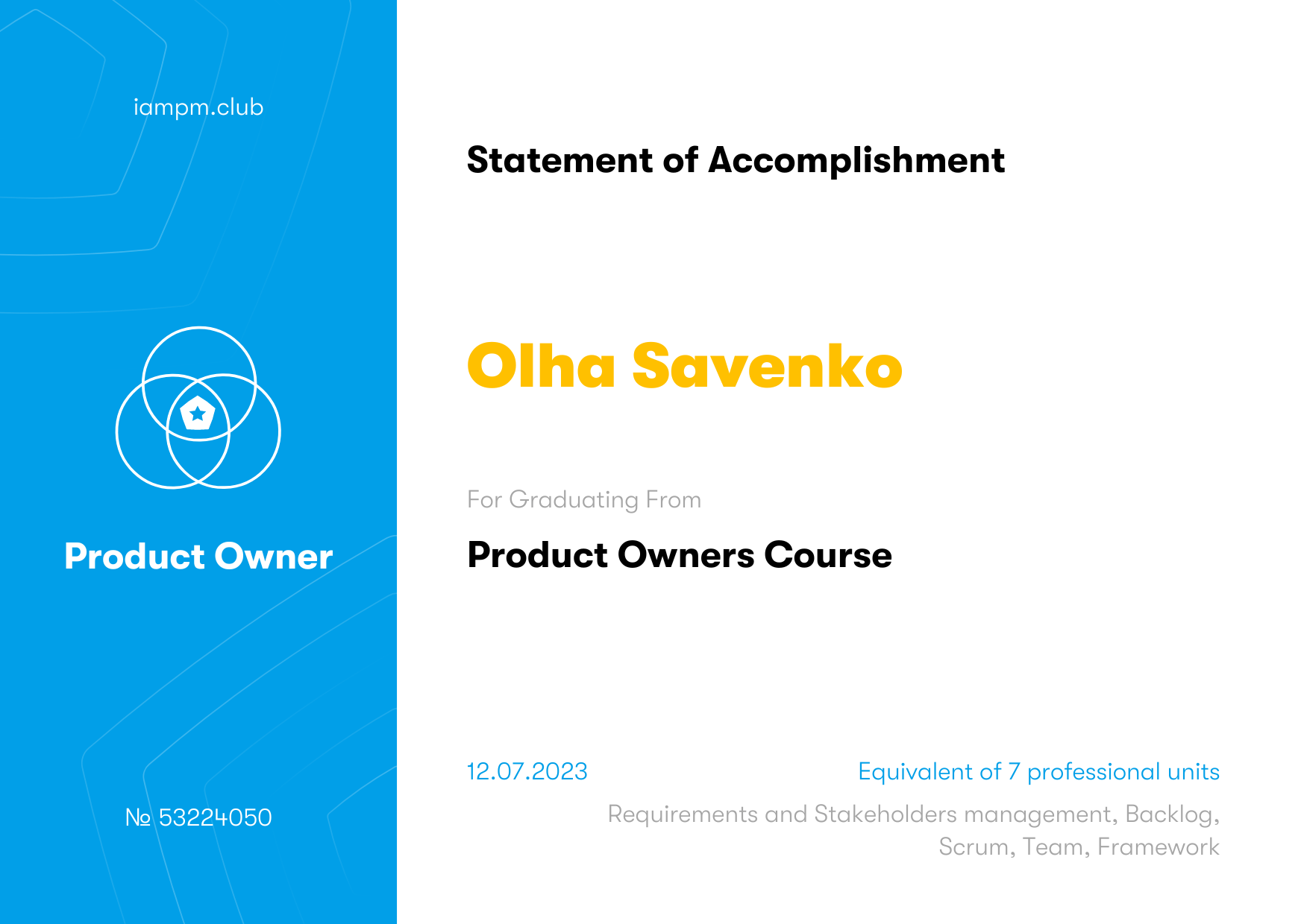 5+ років досвіду в менеджменті IT проєктів та продуктів (Україна, Швейцарія,США, Франція) на позиціях Product Manager, Product Marketing Lead та Project Coordinator.